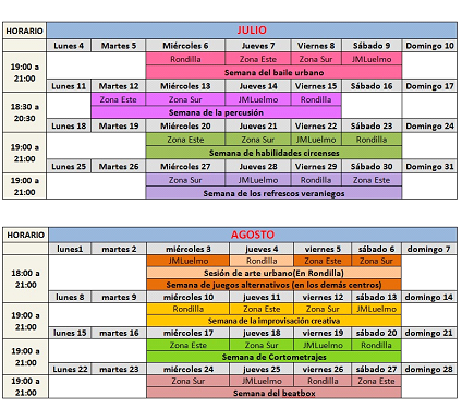 Asimismo, se han programado 8 semanas temáticas con actividades específicas atractivas para público joven que irán rotando por los cuatro centros cívicos abiertos.
