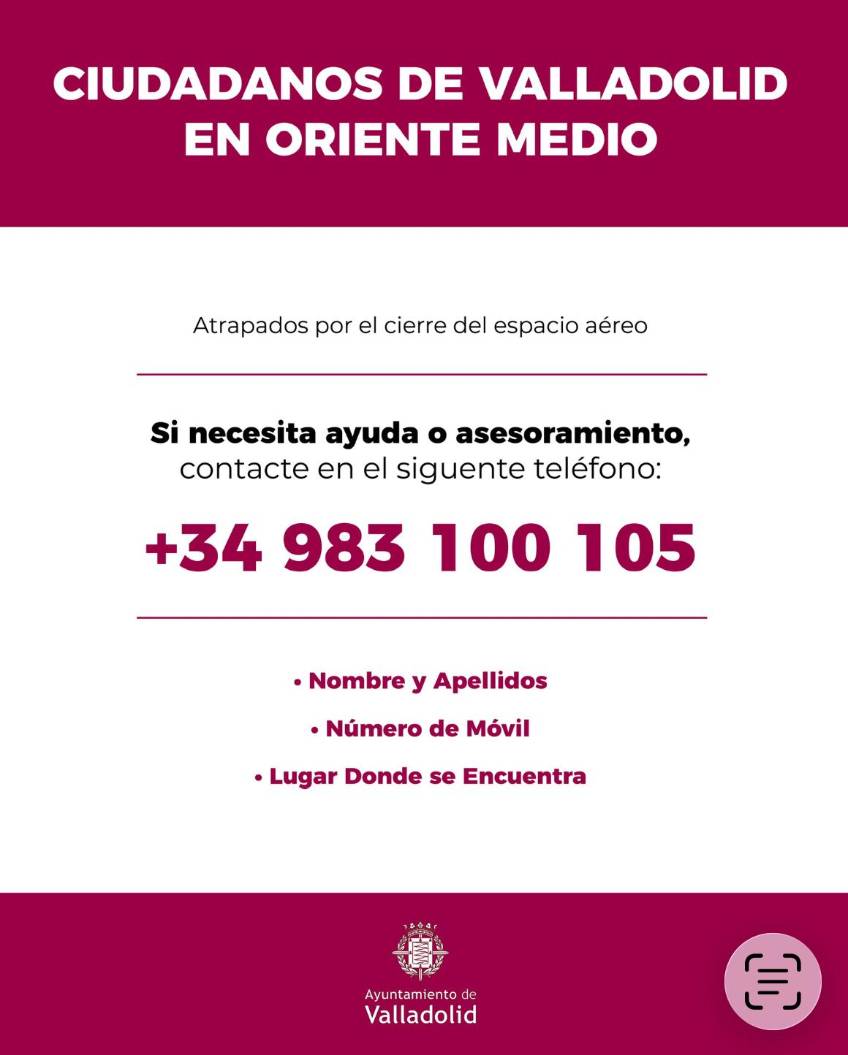 Tras los acontecimientos producidos en los últimos días en distintos países de Oriente Medio, el Ayuntamiento de Valladolid quiere poner a disposición de los vallisoletanos que se encuentren en la zona el servicio de atención al ciudadano para canalizar cualquier...