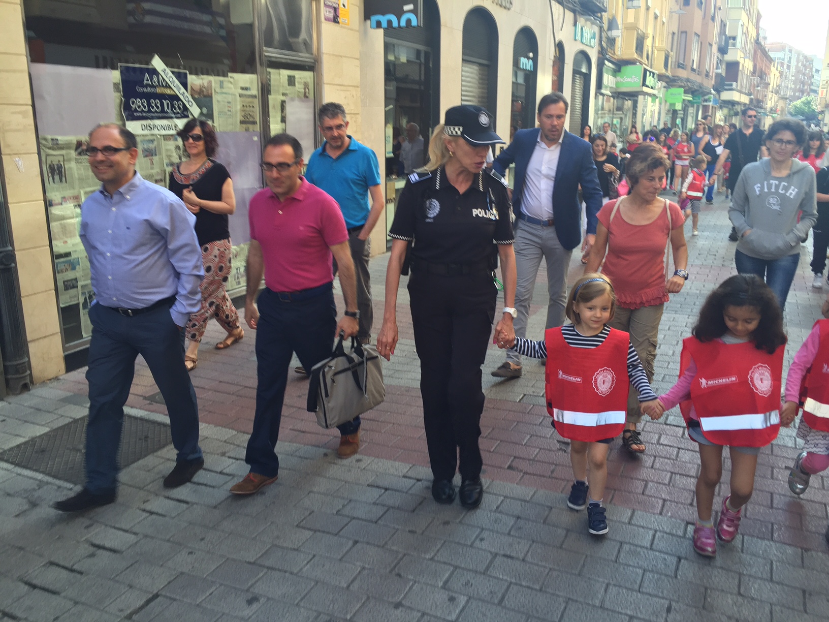 Los escolares, de 3º a 6º de Primaria, habían realizado un simulacro el pasado 7 de junio, caminando, ataviados con chalecos en cuyo dorso figura el nombre de su colegio, en sentido contrario, desde el centro al punto de encuentro y viceversa, pero esta mañana fue la primera en que el desplazamiento se hizo a la hora de entrada en clase.