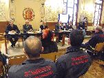 El Salón de Recepciones de la Casa Consistorial ha acogido esta mañana el acto institucional con motivo del quinto centenario de la creación de los bomberos de Valladolid, sesión que ha contado con la presencia del alcalde, Francisco Javier León de la Riva; el concejal de Seguridad y Movilidad, Manuel Sánchez Fernández; y el director del Servicio de Extinción de Incendios y Salvamento, Javier Reinoso Relea, junto al subdelegado del Gobierno, José Antonio Martínez Bermejo, y el presidente de la Diputación, Jesús Julio Carnero.