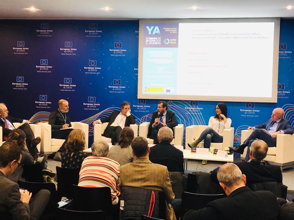 La Zona Azul de IFEMA, donde se están llevando a cabo las más importantes negociaciones de la COP25, ha sido el escenario en el que se ha desarrollado la mesa redonda denominada "Políticas económicas de los gobiernos locales frente al cambio climático" en la que ha participado el alcalde, Óscar Puente.