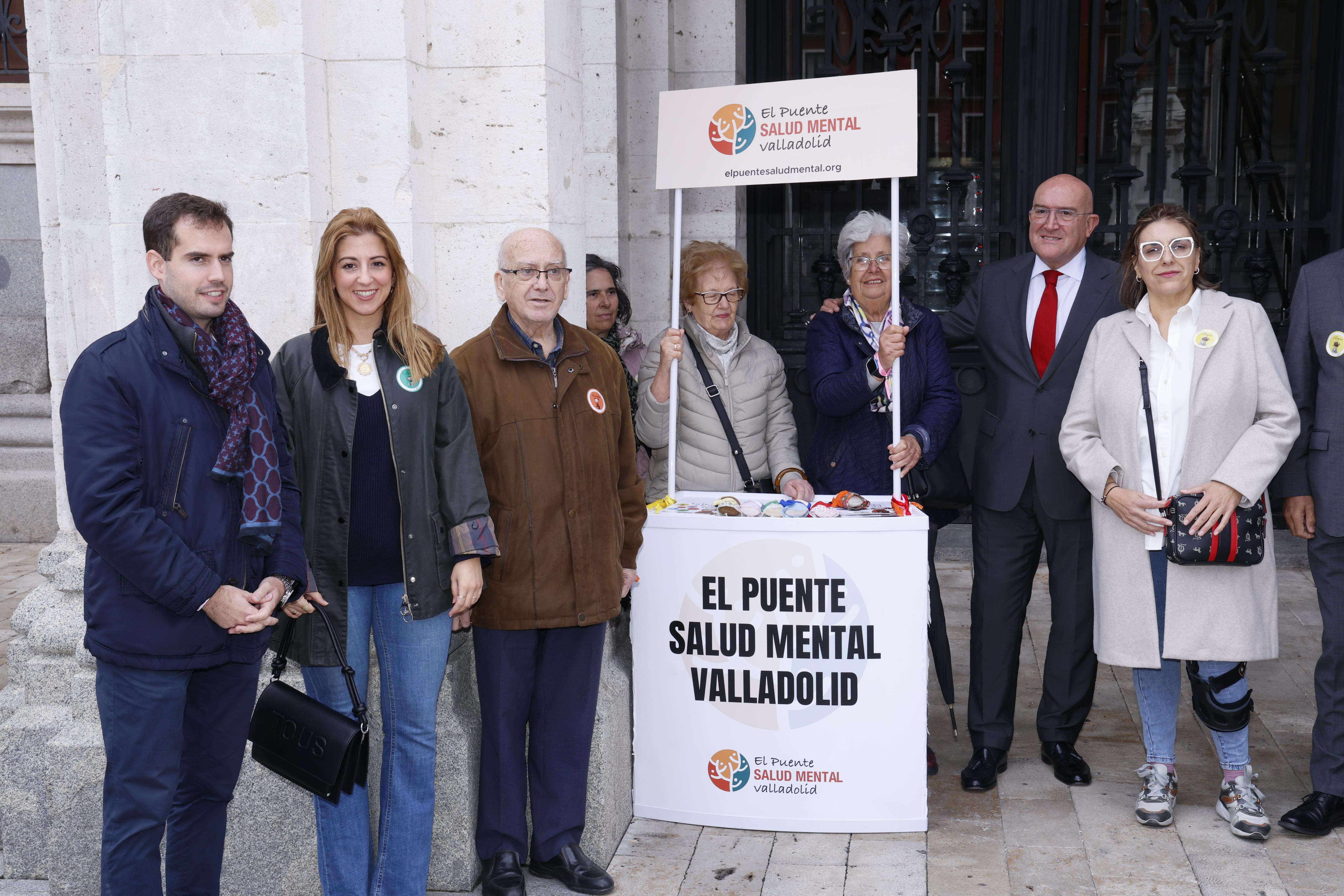 Con motivo del Día Mundial de la Salud Mental, el alcalde, Jesús Julio Carnero, y el concejal de Personas Mayores, Familia y Servicios Sociales, Rodrigo Nieto, han participado en el acto de sensibilización organizado por El Puente Salud Mental, en el que han reafirmado el compromiso del Ayuntamiento con la salud mental de todos los vecinos de Valladolid. En este acto se han repartido muñecas 'Micaelas', simbólicas muñecas de trapo que nacieron hace unos meses en los talleres de costura de la entidad para visibilizar y concienciar sobre la salud mental.