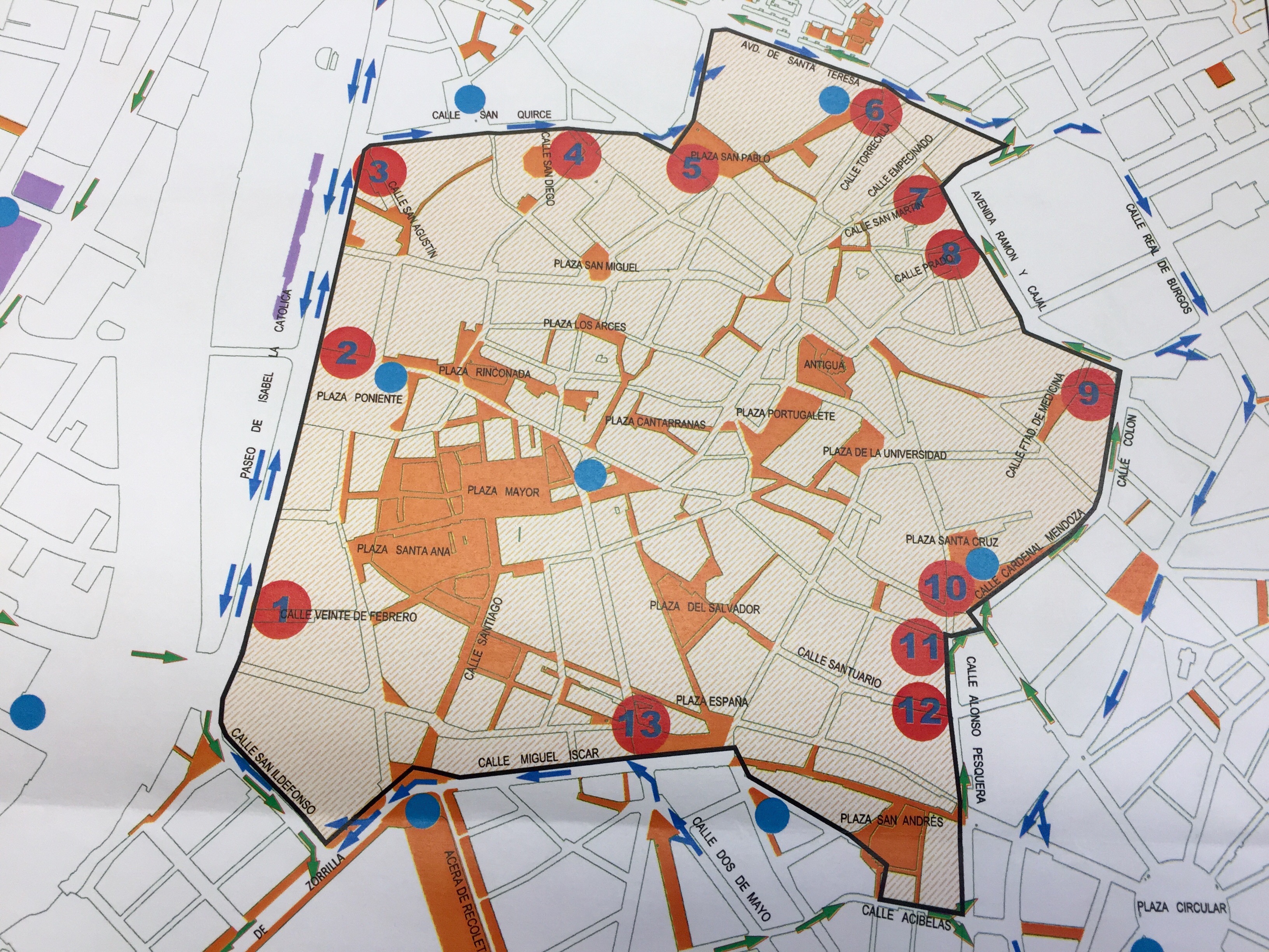 Calle San Quirce, calle Cardenal Torquemada, Avda. de Sta. Teresa, calle Gondomar, calle Chancillería, calle Ramón y Cajal, calle Colón, calle Cardenal Mendoza, calle Pedro Barruecos, calle Alonso Pesquera, Plaza Cruz Verde, calle Labradores, calle Acibelas, calle Cadena, calle Vega, Plaza España, calle Miguel Íscar, Plaza de Zorrilla, Pº de Zorrilla, Calle San Ildefonso y Pº de Isabel la Católica.