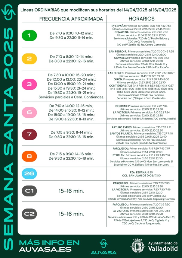 AUVASA Semana Santa 2025 líneasAUVASA Semana Santa 2025 líneas