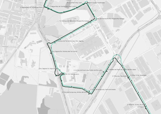 Por lo tanto, los vecinos del barrio del Nuevo Hospital, que hasta ahora solamente disponían de paradas en C/ Dulzaina, contarán con nuevas paradas en C/ Picos de Europa esquina con Sierra de Gredos, C/ Picos de Europa esquina con Arribes del Duero, C/ Arribes del Duero frente a Cañón del Río Lobos, C/ Arribes del Duero esquina Cañón del Río Lobos y C/ Víctimas del Terrorismo frente a Hospital Río Hortega.
