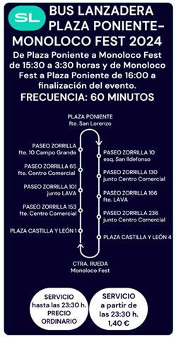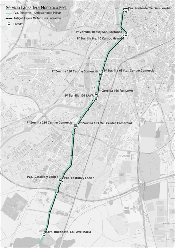 El ‘Monoloco Fest’ que se celebrará el próximo sábado, 27 de abril, prevé una asistencia destacada de público, motivo por el cual AUVASA habilitará una lanzadera a su sede, en la antigua Hípica Militar, con el fin de conectar el centro de la ciudad con la misma (ver plano de recorrido y paradas), y proporcionar una alternativa de transporte a las personas interesadas en asistir al mismo.