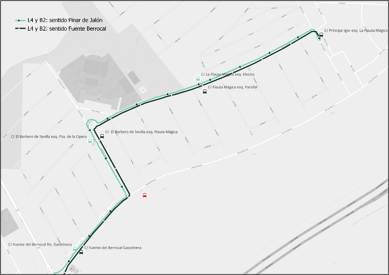 · Se incorporan nuevas paradas en las calles El Barbero de Sevilla y la Flauta Mágica y la parada de cabecera de la línea se ubicará ahora en la c/ Príncipe Ígor, esquina con c/ La Flauta Mágica.