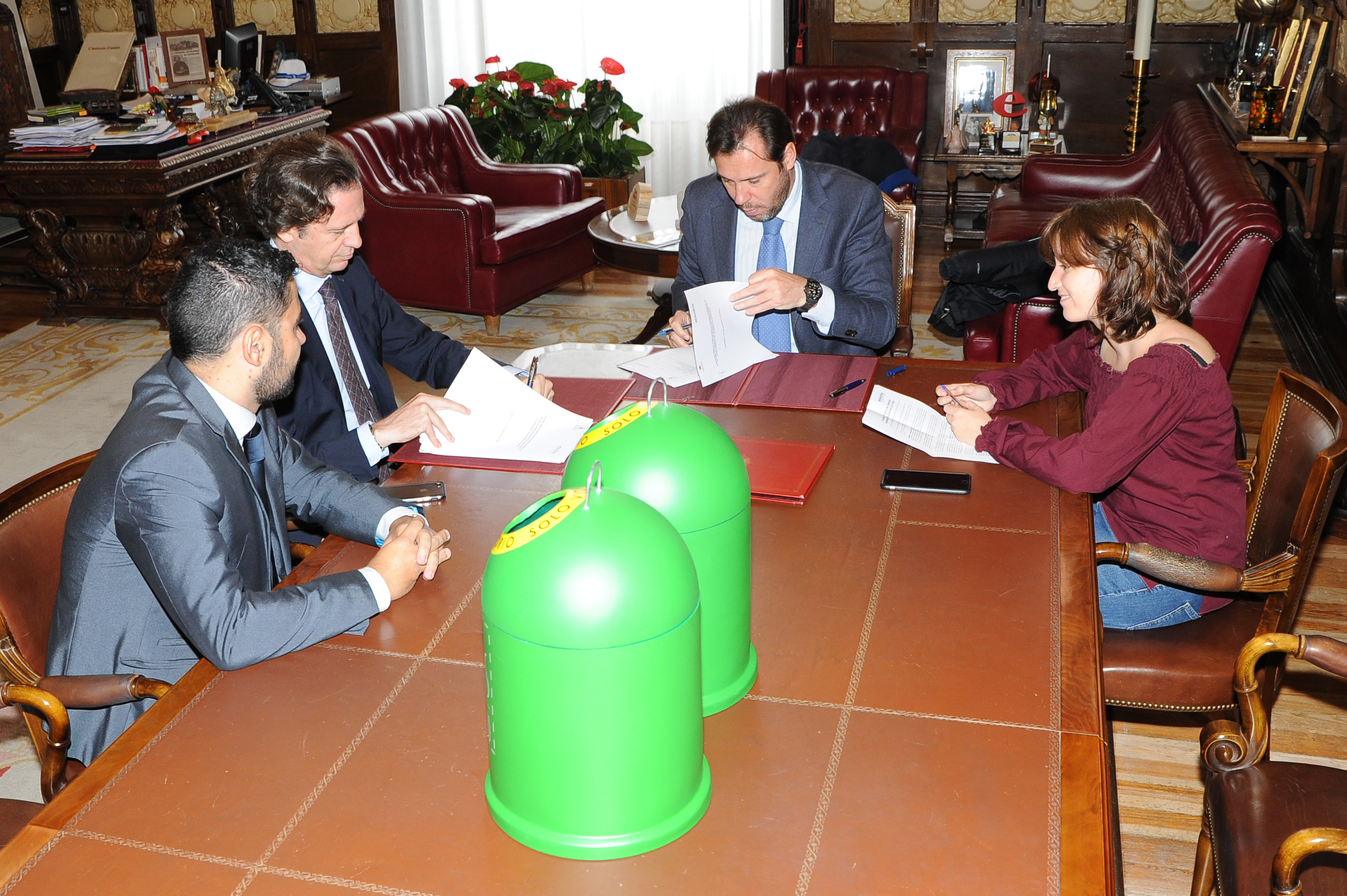 El Ayuntamiento de Valladolid, representado por el alcalde de Valladolid, Óscar Puente, y la concejala de Medio Ambiente y Sostenibilidad, María Sánchez, ha firmado este lunes un convenio con la empresa Ecovidrio para la creación del Programa ‘Valladolid Recicla Vidrio’, por el que se pretende incrementar la tasa de reciclaje de vidrio en la ciudad en más de un 10% durante los próximos tres años, pasando de los 17,2 kilogramos por habitante que se reciclan actualmente a 19kg/hab.