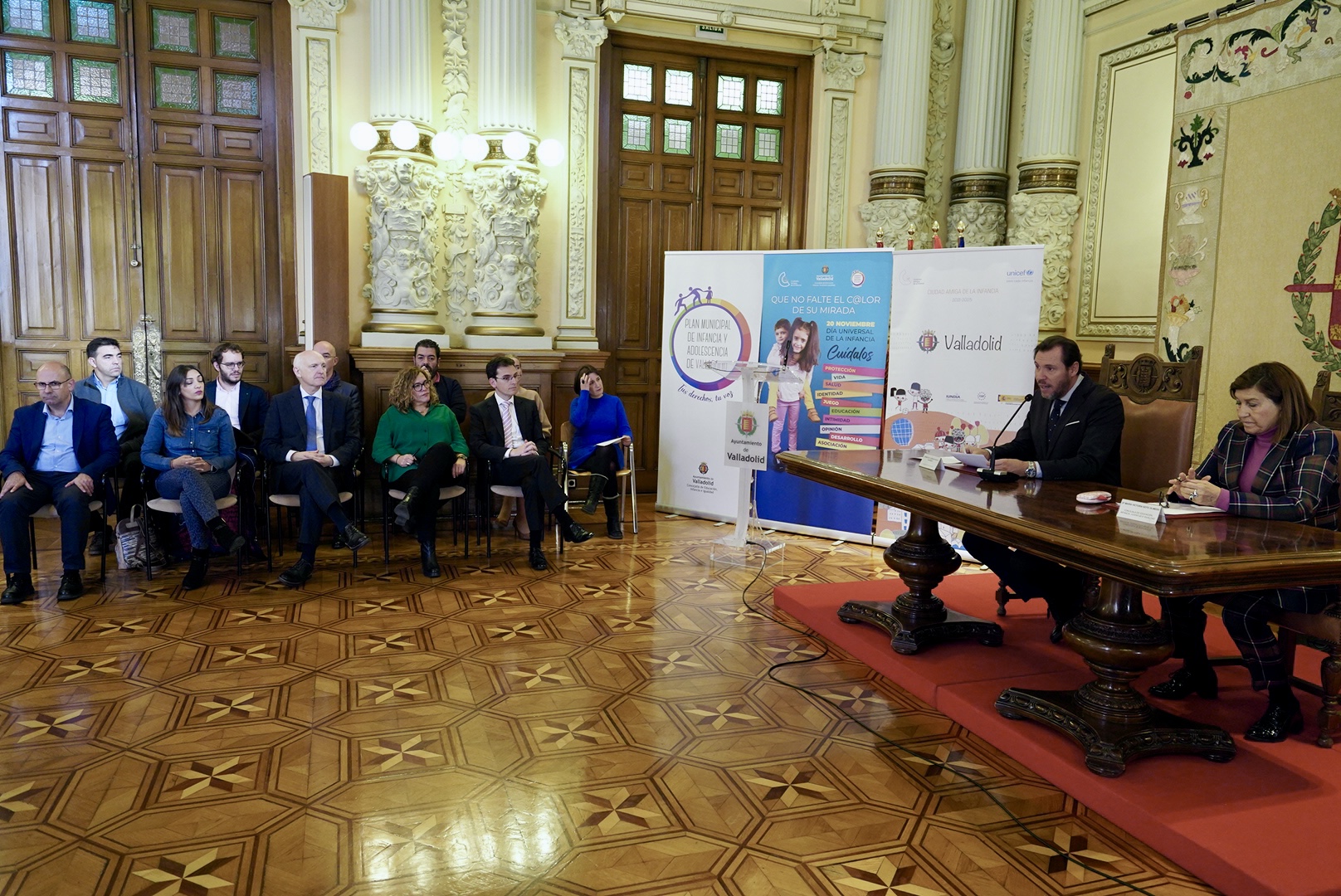 En el acto institucional se ha procedido, por parte de los grupos políticos del Ayuntamiento de Valladolid VTLP, Cs, PP y PSOE a la lectura la Declaración elaborada por UNICEF.