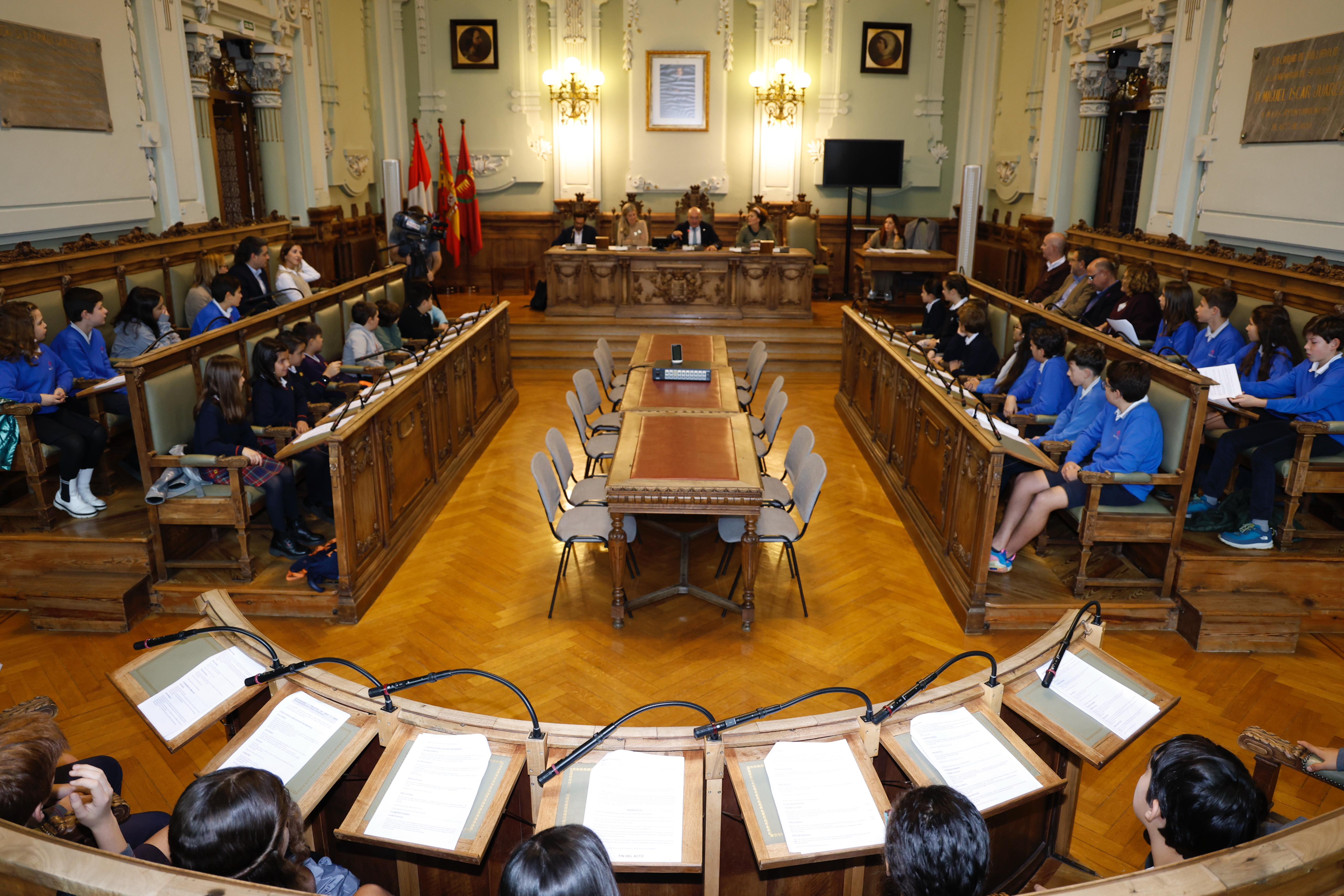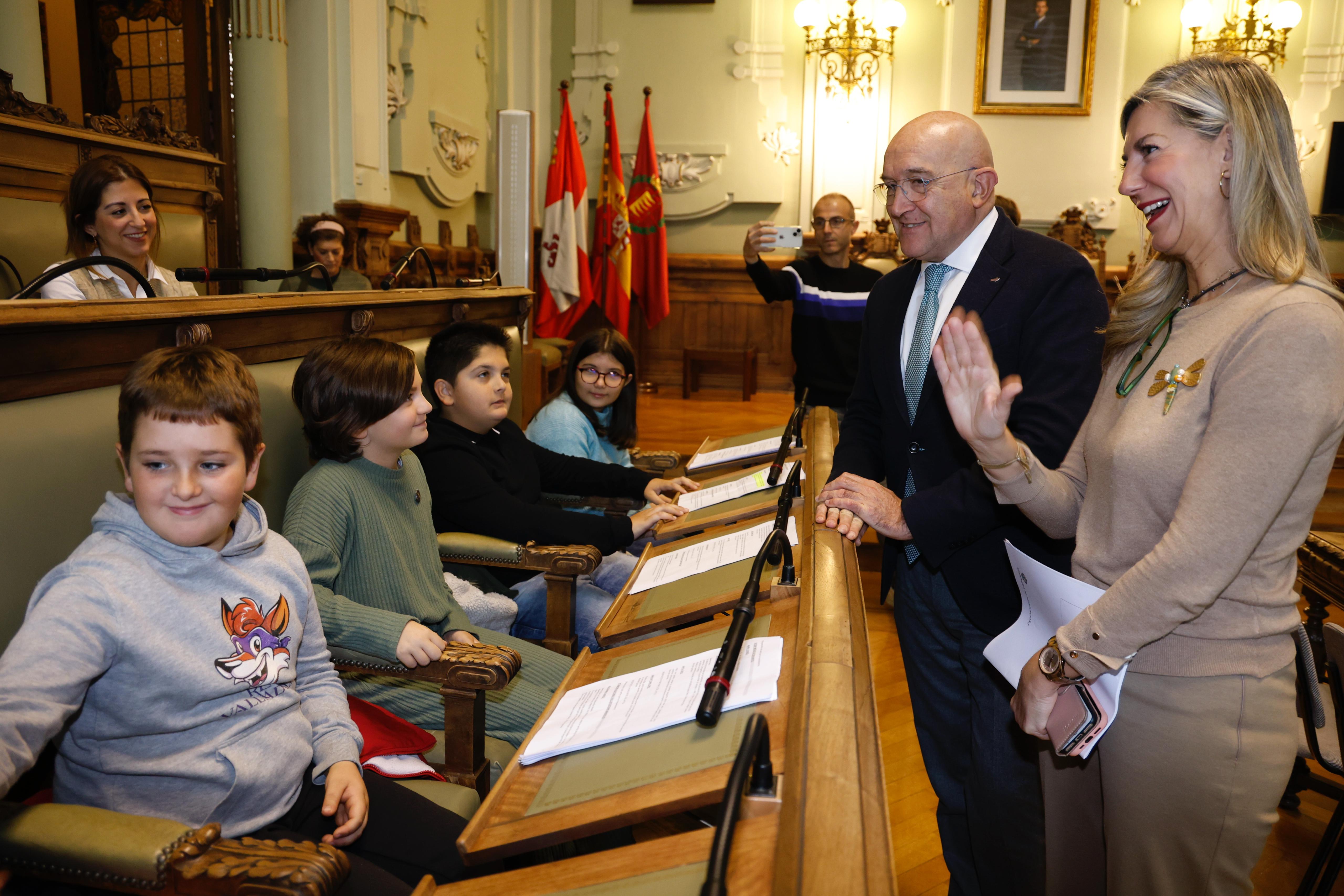 El alcalde, Jesús Julio Carnero, ha presidido esta mañana, en el Ayuntamiento, el Pleno del Consejo Municipal de la Infancia que tiene como objetivo favorecer la participación de los niños de Valladolid en las actuaciones de la política municipal, considerando su plena capacidad de opinión y expresión.