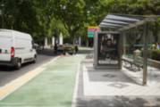 Se ha recolocado la parada de autobús, con su correspondiente marquesina, de modo que no afecte a la visibilidad de la calle Aragón, y se ha ampliado la plataforma de la del lado opuesto de modo que también sea posible la instalación de una marquesina. Asimismo, se ha desplazado el aseo de fin de línea para el servicio de los conductores de AUVASA.