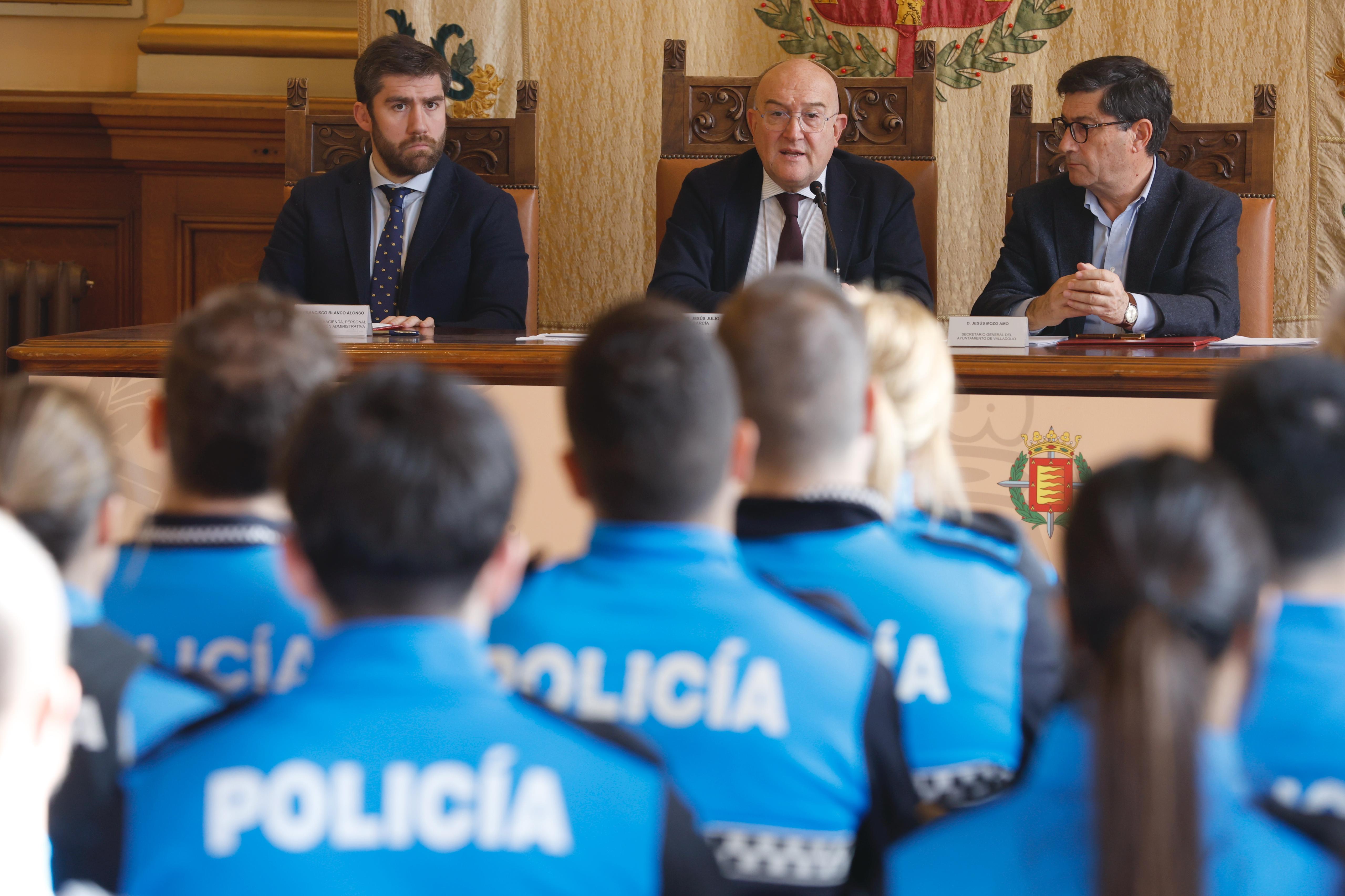 A ellos se ha dirigido en primera instancia Carnero para darles la bienvenida a la plantilla municipal, agradecerles que hayan elegido el Ayuntamiento de Valladolid para continuar su carrera profesional como agentes policiales y felicitarles por haber culminado el proceso selectivo para el acceso a un puesto en la policía municipal de la ciudad, "donde iniciaréis un capítulo más en vuestra trayectoria".
