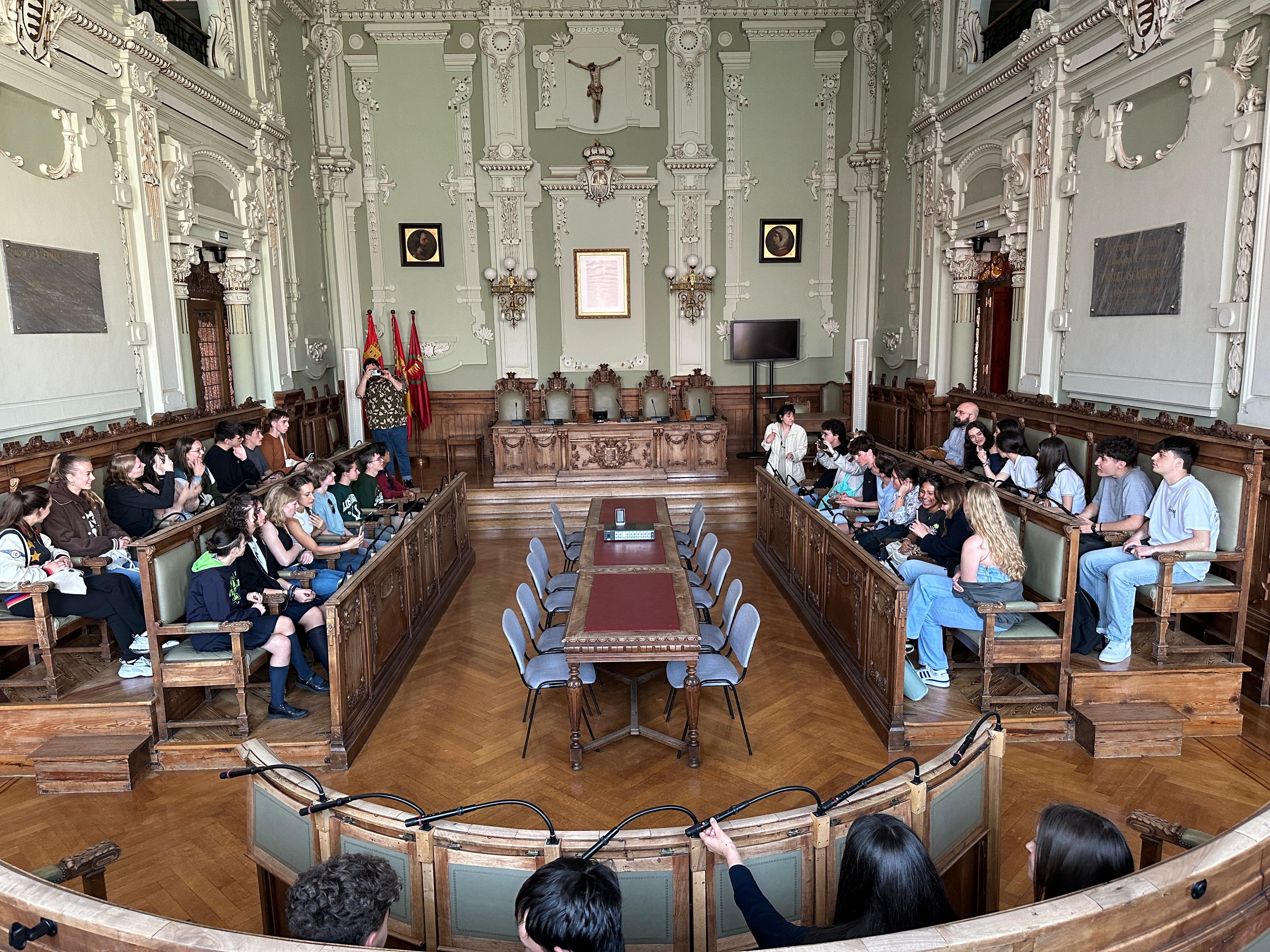 La Casa Consistorial ha acogido hoy a un grupo de estudiantes de centros educativos de Italia y Países Bajos que participan en el proyecto de Erasmus+ ‘Abriendo nuestras mentes, mejores personas’, gestionado por el Colegio Jesús y María de Valladolid.