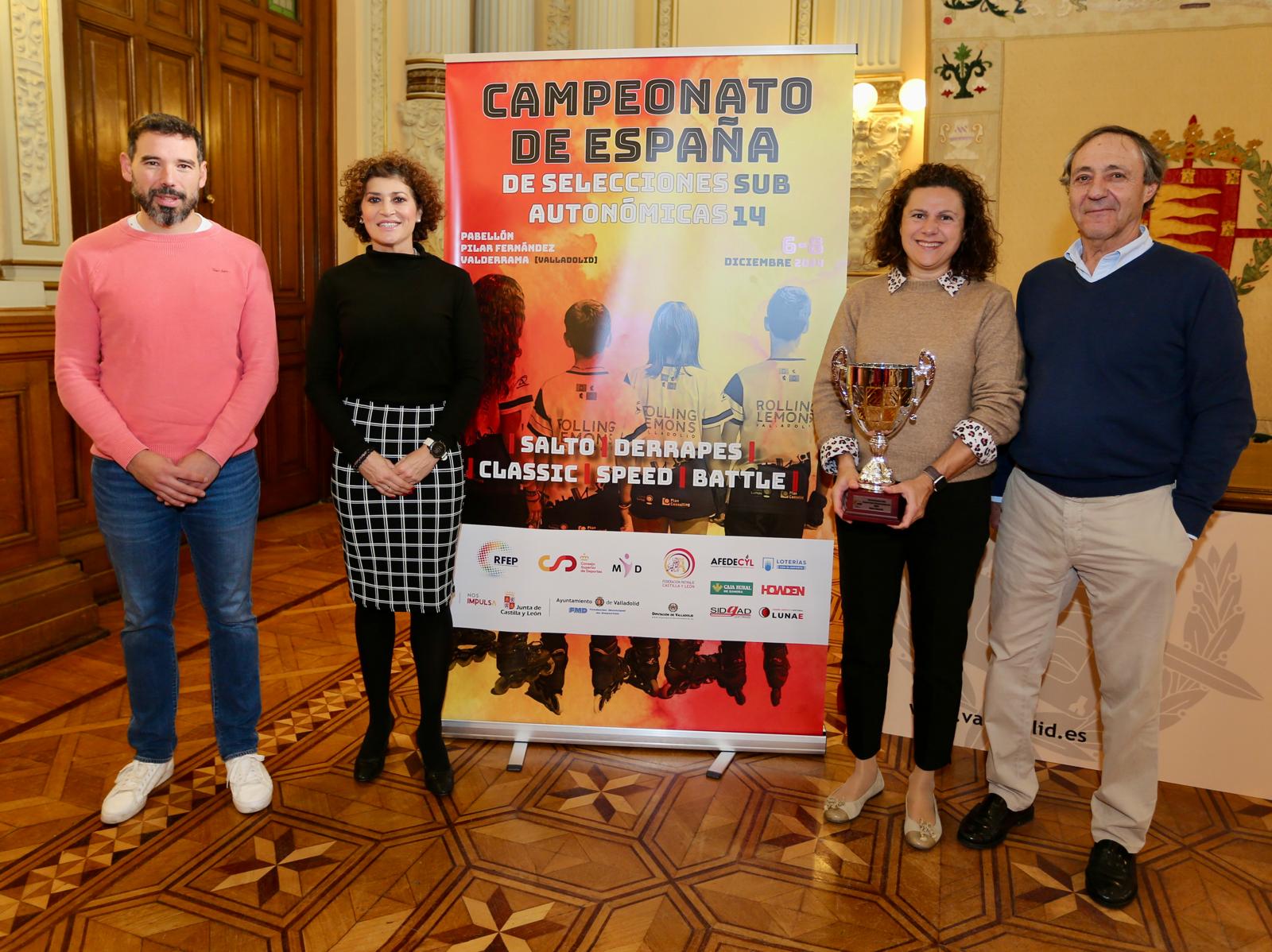 El Ayuntamiento de Valladolid ha presentado esta mañana en el salón de recepciones el Campeonato de España de selecciones autonómicas de Inline Freestyle categoría sub-14 mixta que se disputará los próximos 6 a 8 de diciembre en el Polideportivo Pilar Fernández Valderrama con la presencia de un centenar de patinadores pertenecientes a nueve Comunidades Autónomas: Andalucía, Castilla La Mancha, Cataluña, Comunidad Valenciana, Madrid, Aragón, Baleares, Extremadura y Castilla y León.