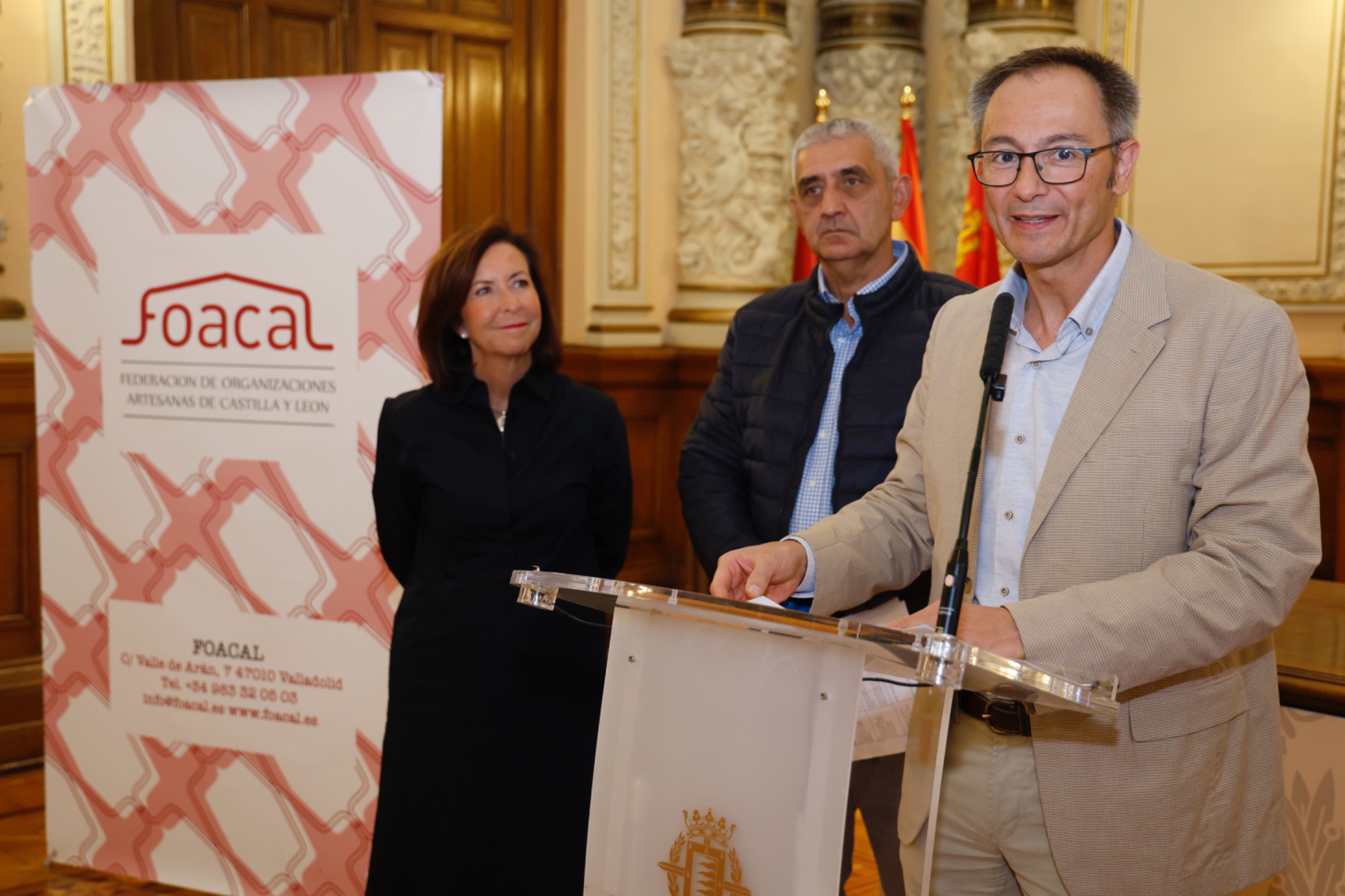El concejal de Comercio, Mercados y Consumo, Víctor Martín, acompañado por la directora general de Consumo y Comercio de la Junta de Castilla y León, María Pettit, y el presidente de la Federación de Organizaciones Artesanas de Castilla y León (FOACAL) Miguel Ángel Tapia, han presentado el inicio del curso en oficios artísticos y tradicionales del Centro de Artesanía de Castilla y León-CEARCAL, que cuenta con una oferta formativa para el curso 2024-2025 de 22 especialidades, para las que ya ha recibido más de 600 solicitudes.