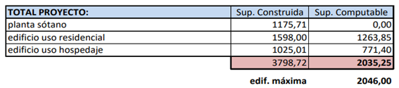 Se han diseñado dos bloques prismáticos sobre rasante para albergar en uno de ellos un edificio de 19 viviendas protegidas VP y sus anexos, y en el segundo bloque un edificio destinado a 14 apartamentos turísticos y sus anexos. Bajo rasante se ha proyectado un sótano común, que albergará un garaje colectivo que da servicio a los 2 bloques.