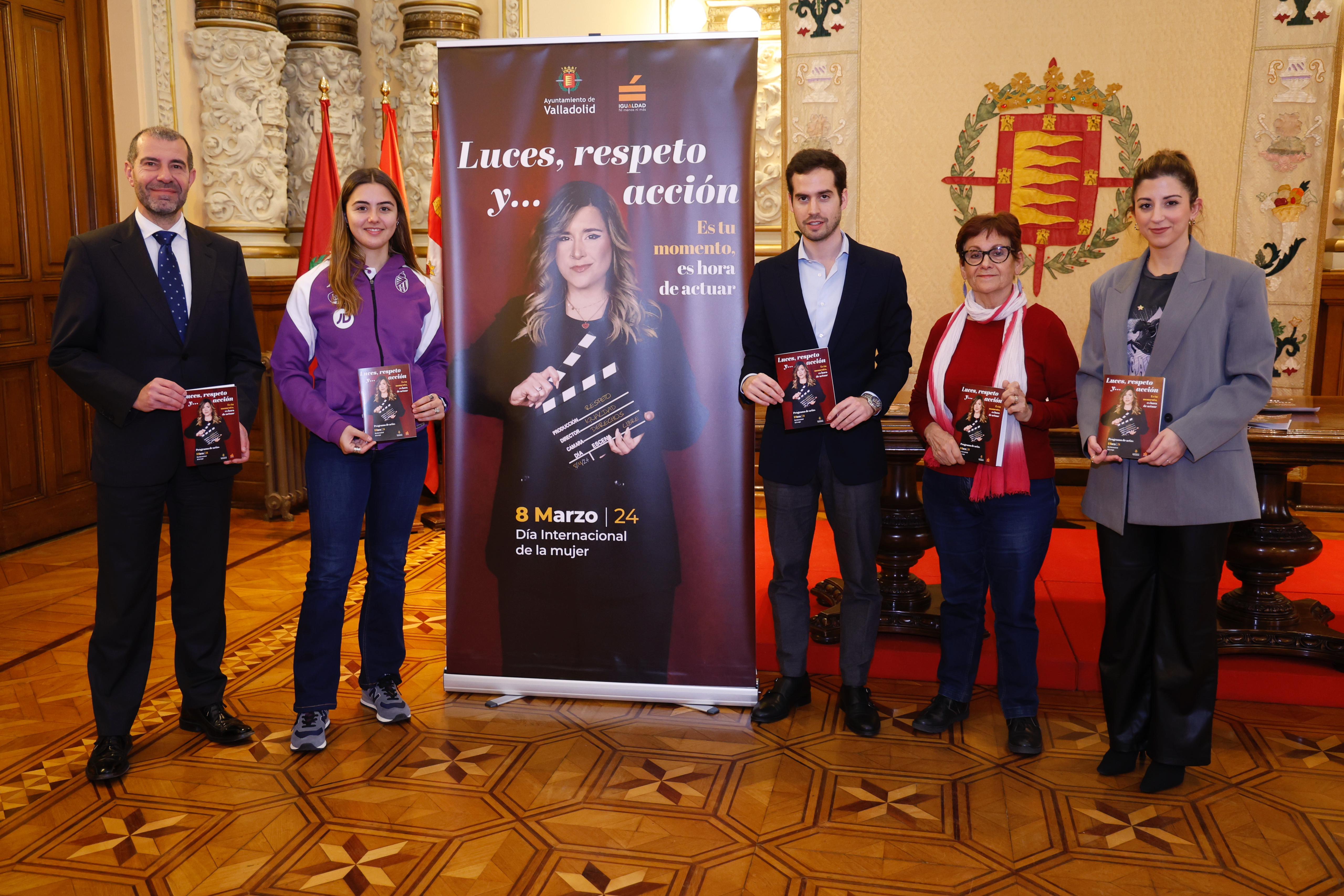El concejal de Personas Mayores, Familia y Servicios Sociales, Rodrigo Nieto, ha presentado esta mañana en la Casa Consistorial el programa de actividades organizadas con motivo del 8M, Día Internacional de la Mujer. Ha estado acompañado por la vicepresidenta del Consejo Municipal de las Mujeres, Nina Infante; el director del Gabinete de Presidencia y portavoz institucional del Real Valladolid, David Espinar, y la productora ‘Pandora’, Juan José Rodríguez.