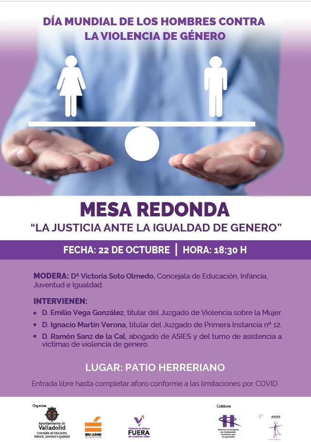 En el marco del Día Mundial de los Hombres contra la Violencia de Género y dentro de las actividades programadas para esta conmemoración se va a celebrar una Mesa Redonda en la que se abordará la violencia de género desde el ámbito de la justicia y la aportación de los hombres a la igualdad.