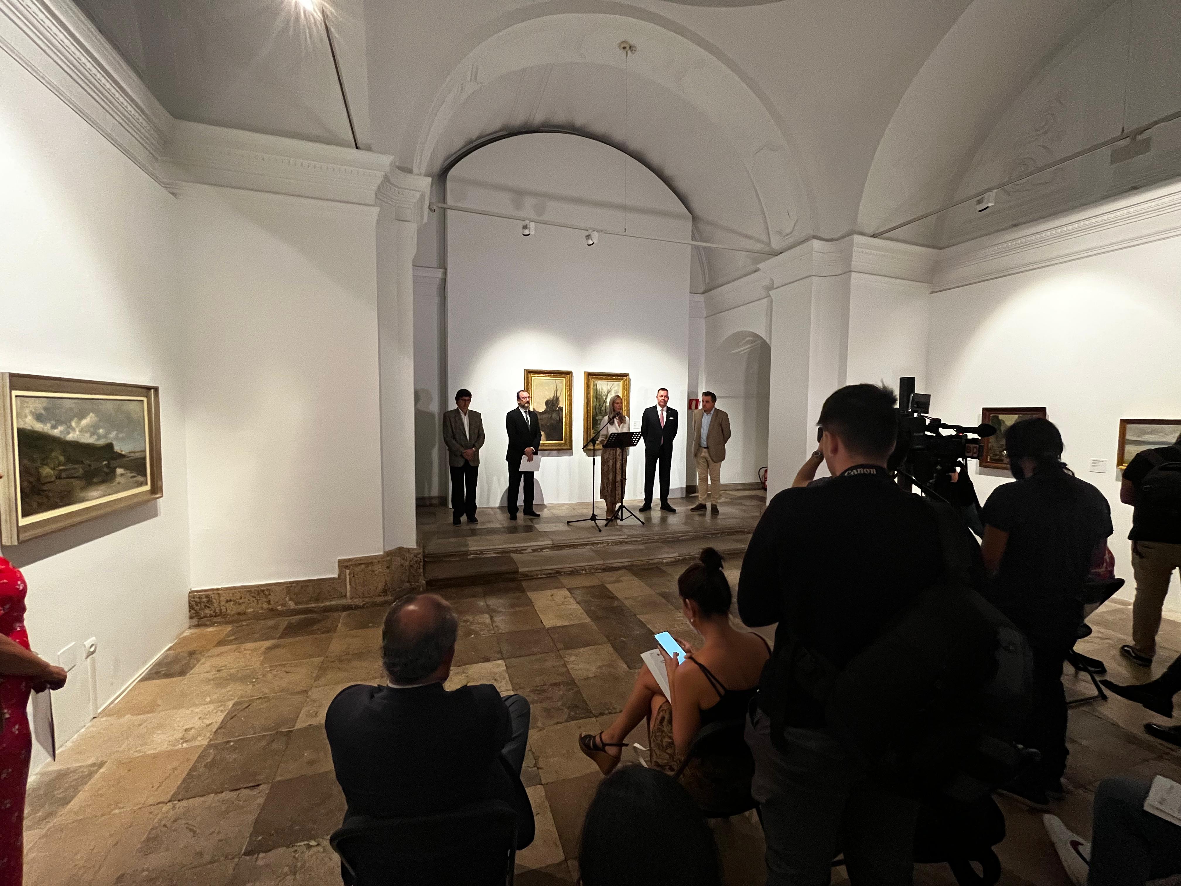 La concejala de Educación y Cultura, Irene Carvajal; el director general de FUNDOS, José María Viejo; el director comercial en Castilla y León de Banco Sabadell, Javier Merino, y el comisario de la muestra, Antonio Ugidos, han inaugurado esta mañana la exposición, que, a través de 90 obras de Joaquín Sorolla y otros cincuenta artistas coetáneos al pintor valenciano, reivindica la edad de oro del paisajismo español.