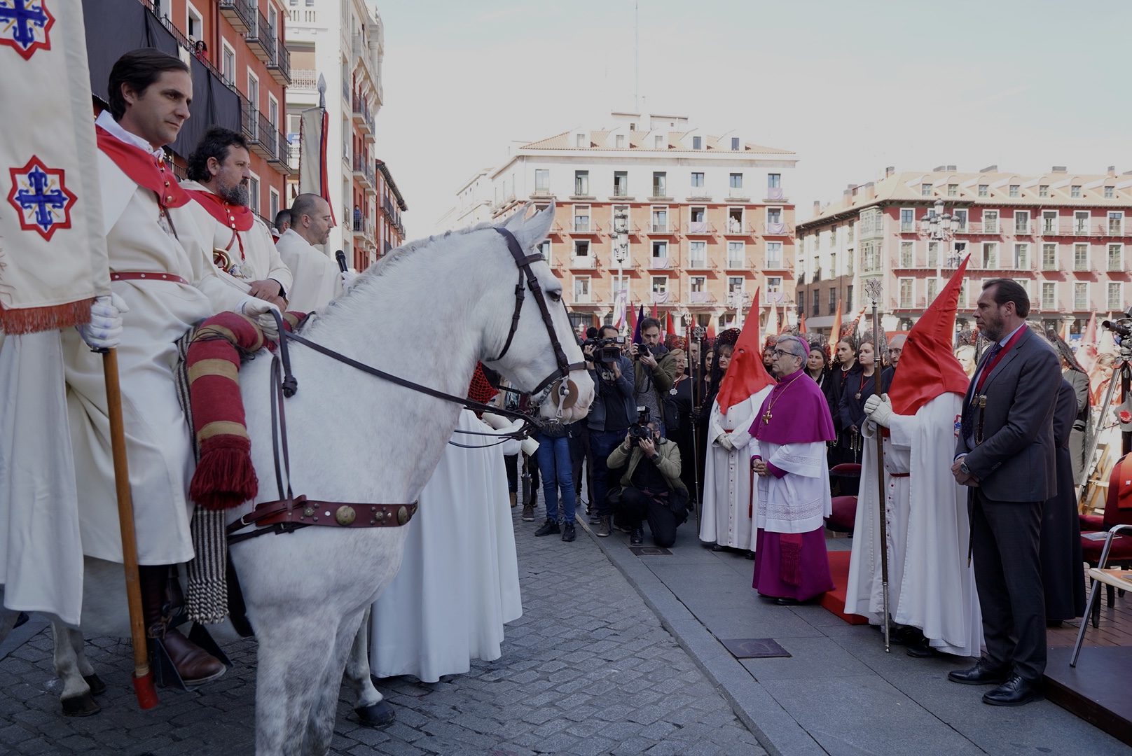 Durante estos días, la presencia internacional se completa con embajadores y diplomáticos de diferentes países. Algunos de ellos han acompañado hoy al alcalde de Valladolid, Óscar Puente, durante el Sermón de las Siete Palabras, celebrado en la Plaza Mayor.