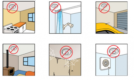 Su colocacion se hará prioritariamente en pasillos o distribuidores de modo que en caso de incendio en alguna estancia el detector alerte cuando el humo llegue a su posición. Aunque se recomienda disponer de un detector por estancia, salvo en cocinas, baños, garajes o cerca de chimeneas, ya que ocasionaría reiteradas falsas alarmas.