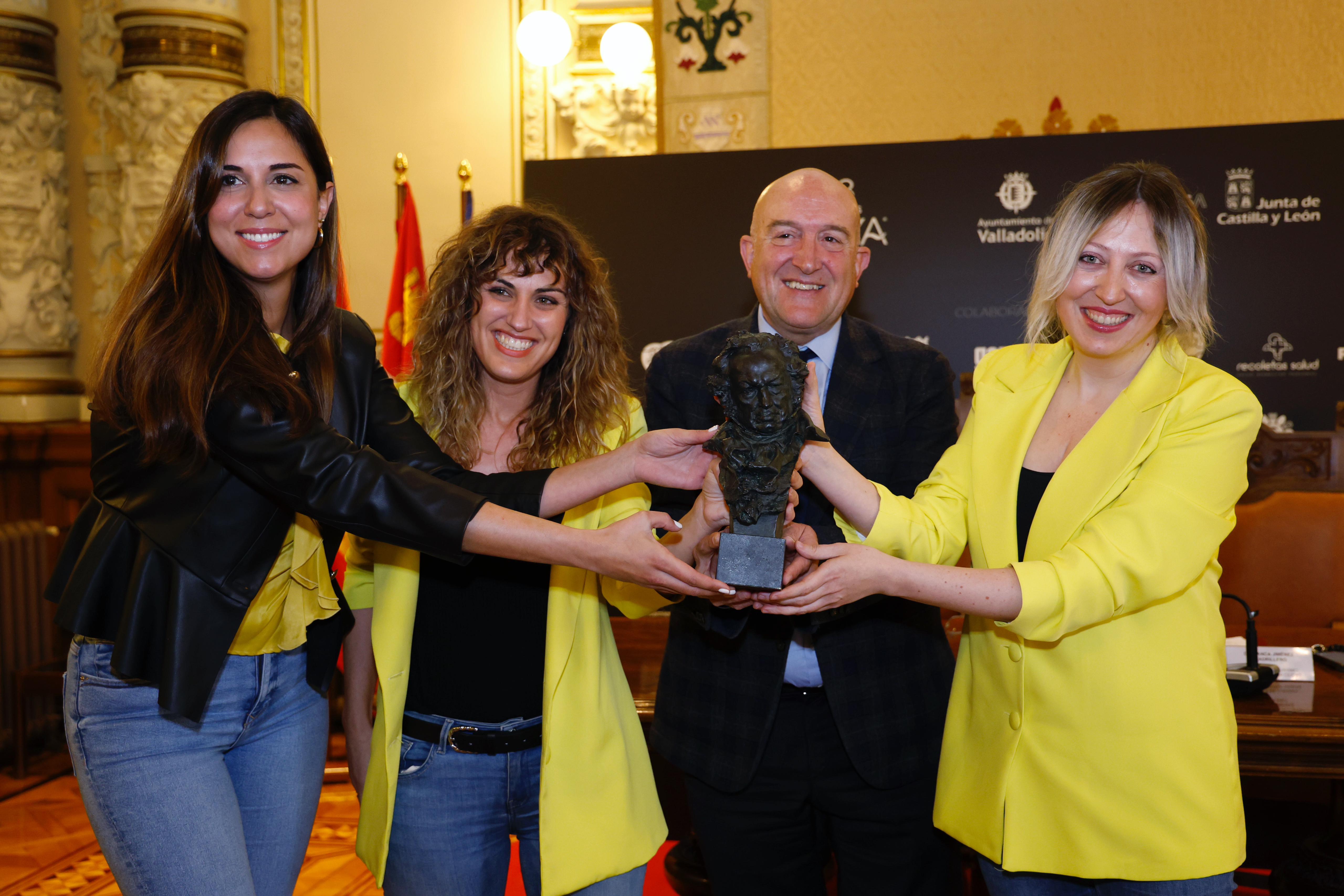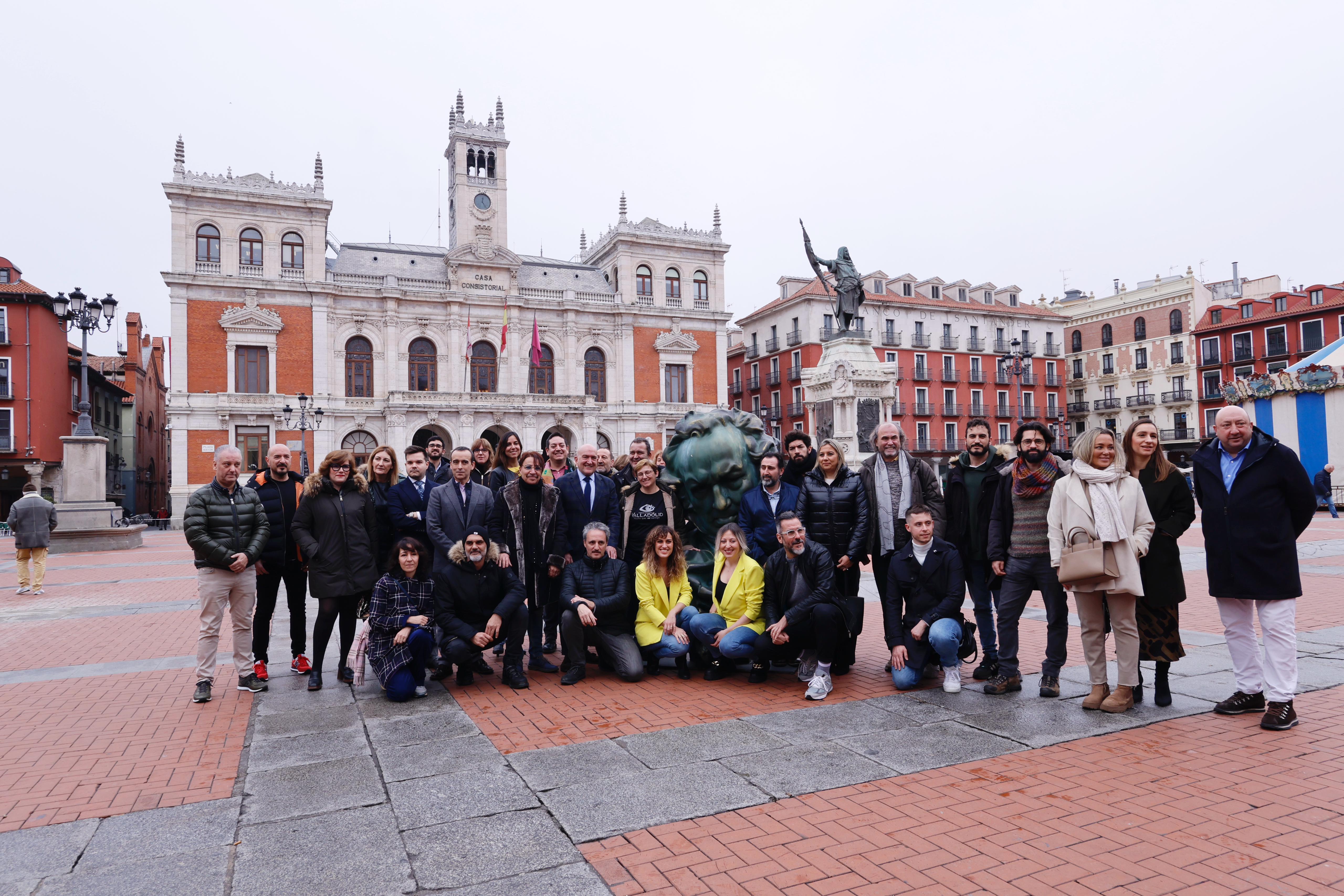 El alcalde, Jesús Julio Carnero, y la concejala de Turismo, Eventos y Marca Ciudad, Blanca Jiménez, han presentado hoy diversas actividades complementarias a las ya puestas en marcha, que se desarrollarán en los próximos días en la ciudad con motivo de la 38 edición de los Premios Goya, con el propósito de visibilizar el talento local y agradecer la colaboración de distintas entidades, asociaciones, empresas, establecimientos comerciales, centros escolares y artistas locales, entre otros, que se han implicado con sus respectivas aportaciones para convertir a Valladolid en una ciudad de cine.