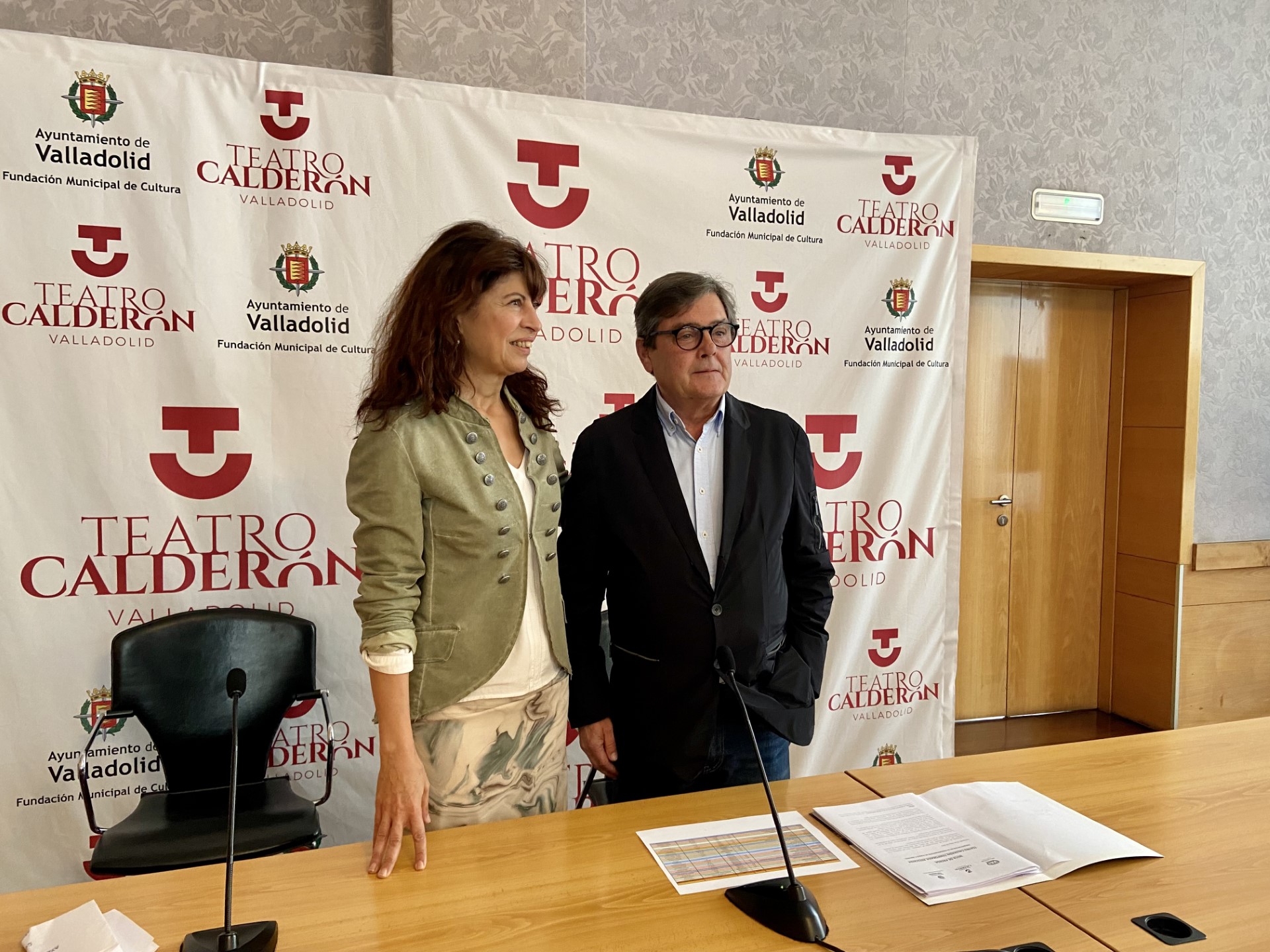 El director del Calderón, José María Viteri, acompañado por la concejala de Cultura y Turismo, Ana Redondo, ha desvelado esta mañana los detalles del programa del Teatro Calderón para su temporada 2023/24 y, como es tradición, su anticipo una oferta escénica especial en septiembre que comenzará con las fiestas patronales.