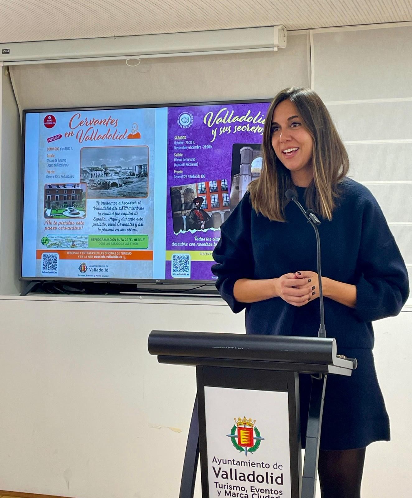 La concejala de Turismo, Eventos y Marca Ciudad, Blanca Jiménez, ha dado a conocer dos nuevas visitas guiadas que la Sociedad Mixta para la Promoción del Turismo de la Ciudad ha organizado para la temporada de otoño. ‘Valladolid y sus secretos’ y ‘Cervantes en Valladolid’ permitirán a los visitantes conocer los espacios, las historias y los entresijos de la ciudad durante los fines de semana de los próximos meses.