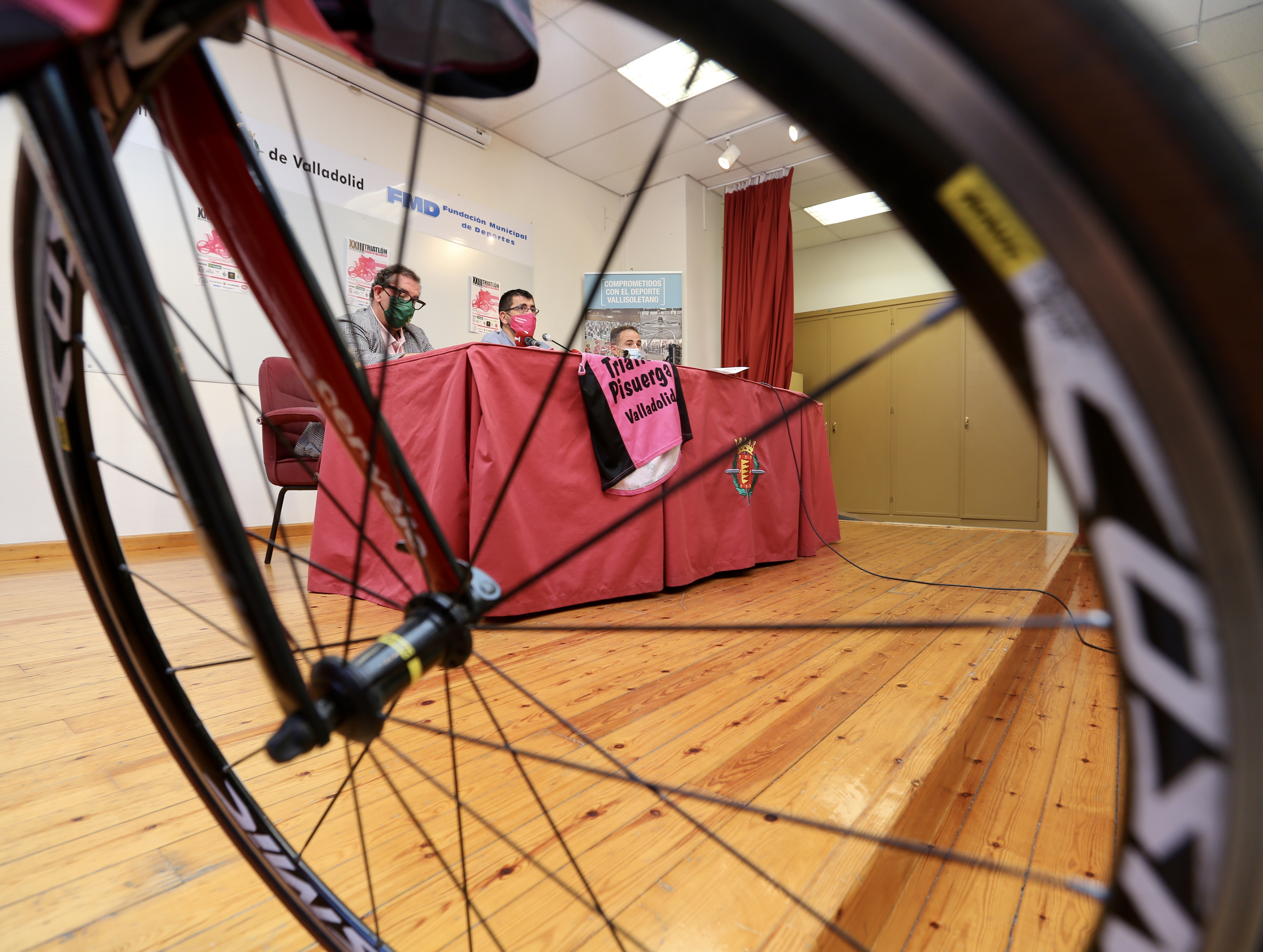 El concejal de Participación Ciudadana y Deportes, Alberto Bustos, ha presentado en la Casa del Deporte la XXIII edición del Triatlón Ciudad de Valladolid acompañado por el presidente del Club Triatlón Pisuerga, Roberto Rey, y el representante de Caja Rural de Zamora, Narciso Prieto.