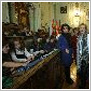 El Pleno celebrado esta mañana ha estado marcado por la celebración previa de un encuentro multitudinario de alumnos de Valladolid y provincia con la Reina Doña Sofía en la Cúpula del Milenio, con la asistencia de más de mil estudiantes de primaria y secundaria de veinte centros. Seis alumnos, pertenecientes al Consejo Municipal de la Infancia han formulado otras tantas preguntas al Premio Nobel de la Paz Muhammad Yunus sobre la importancia de los microcréditos.