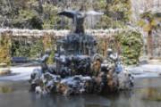 Alrededor del macizo central, y dentro del agua, hay varios tritones que arrojan agua al conjunto. La piedra caliza, tanto del contorno como del resto de la fuente, presenta una notable degradación, con muchas piezas agrietadas, ennegrecidas y erosionadas, mientras que la instalación hidráulica presenta problemas de oxidación y obturación por presencia de cal.
