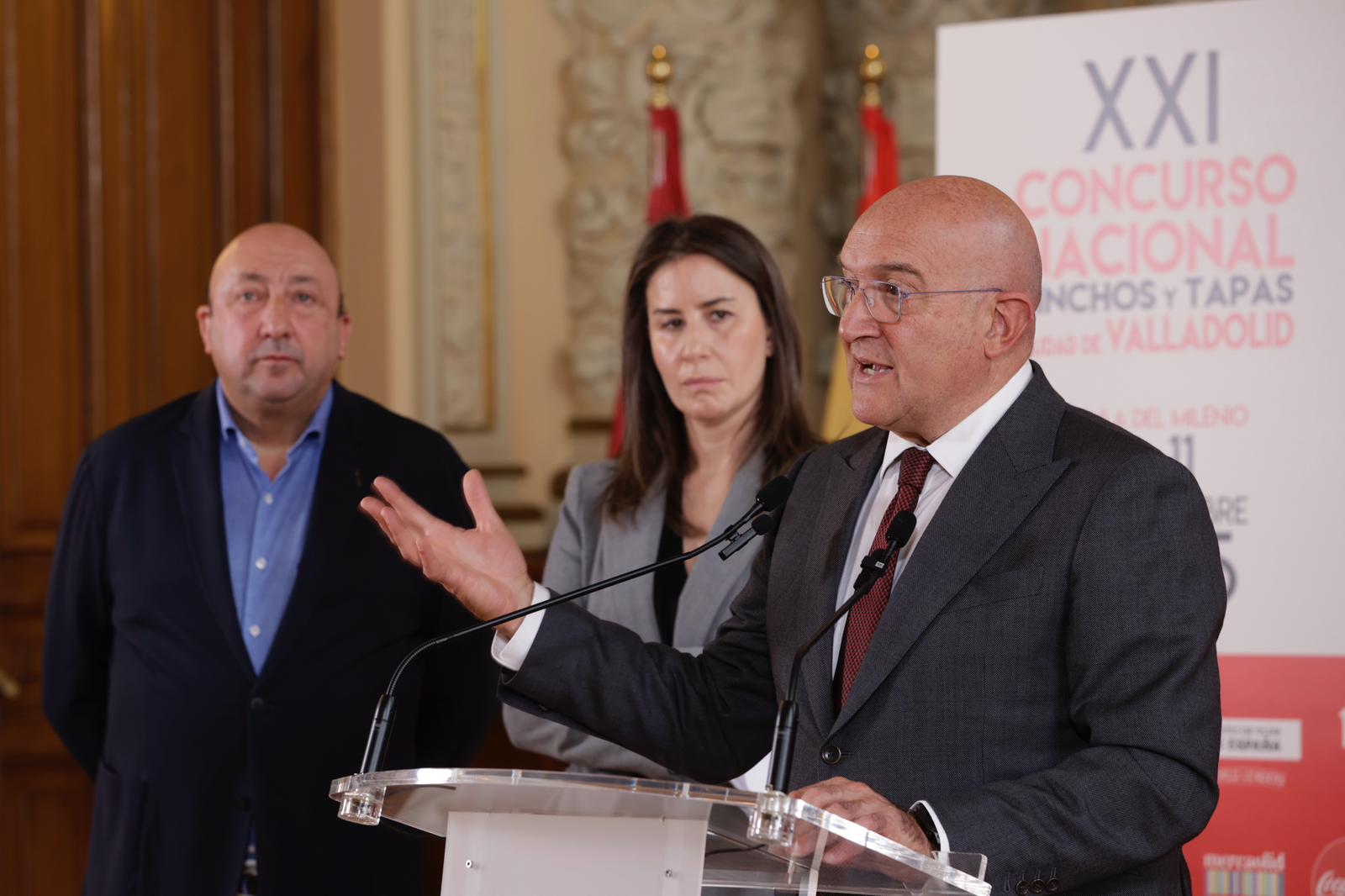 El mes de noviembre volverá a situar a Valladolid en el mapa gastronómico a nivel nacional y mundial con la celebración de los concursos gastronómicos de alta cocina en miniatura. El XXI Concurso Nacional de Pinchos y Tapas ‘Ciudad de Valladolid’ y el IX Campeonato Mundial de Tapas ‘Ciudad de Valladolid’ se celebrarán del 10 al 12 de noviembre en la sede oficial de ambos certámenes: la Cúpula del Milenio. Las dos ediciones han sido presentadas hoy por el alcalde de Valladolid, Jesús Julio Carnero, junto con la concejala de Turismo, Eventos y Marca Ciudad, Blanca Jiménez, el presidente de la Asociación Provincial de Empresarios de Hostelería, Jaime Fernández, la directora técnica del Concurso Nacional, Ana García, y el director técnico del Campeonato Mundial, Ángel Moretón.