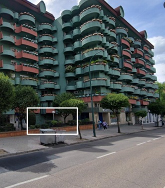 El local se sitúa en la planta baja de un edificio de cinco alturas sobre rasante (B+IV) y una bajo rasante (-I). El inmueble está conformado por cuatro portales correspondientes a los números 1 y 3 de la calle Esperanto y 12 y 14 de la calle Camino de la Esperanza.