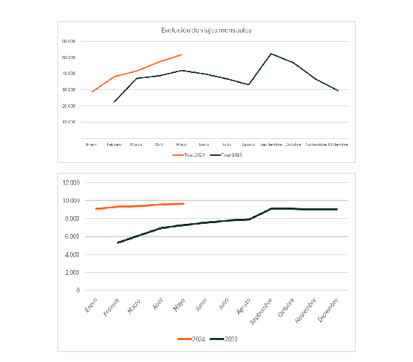 Por último, hay que subrayar que el pasado mes de mayo BIKI ha registrado un total de 51.628 viajes, llegando a tener 9.618 personas usuarias en activo. Estos datos representan un incremento del 23% respecto al mismo mes del año pasado, tal y como puede verse en la siguiente gráfica.