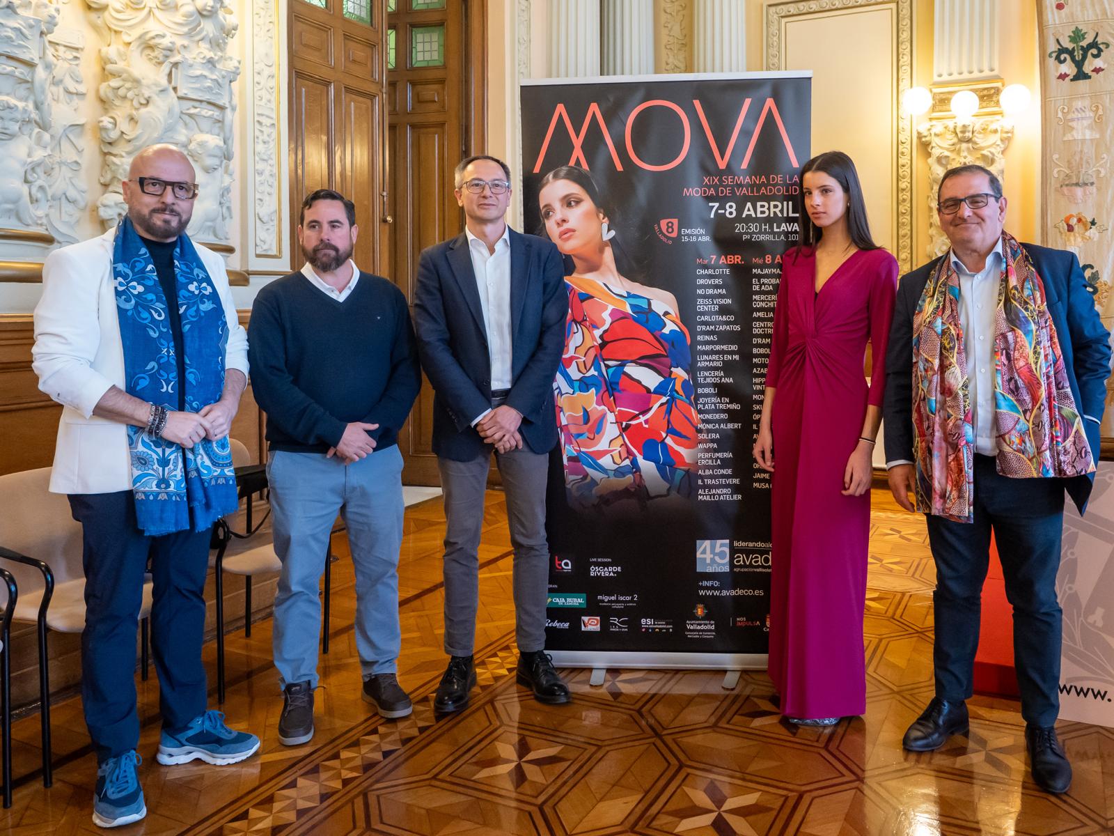 El Ayuntamiento de Valladolid ha acogido la presentación de la nueva edición, en la que han participado el concejal de Comercio, Mercados y Consumo, Víctor Martín; el nuevo presidente de AVADECO, Jaime Ercilla, y el director de MOVA, Ángel Tamayo, de Tamayo Agencia, acompañados por el director de Comunicación y Relaciones Institucionales de Caja Rural de Zamora, Narciso Prieto, que un año más apoya el certamen. Junto a ellos, algunos de los comercios participantes y firmas colaboradoras. Entre los asistentes, destacar a la modelo vallisoletana Lucía Huidobro, así como a la cantante Ani Queen, que ha colaborado en la selección de modelos de esta edición.