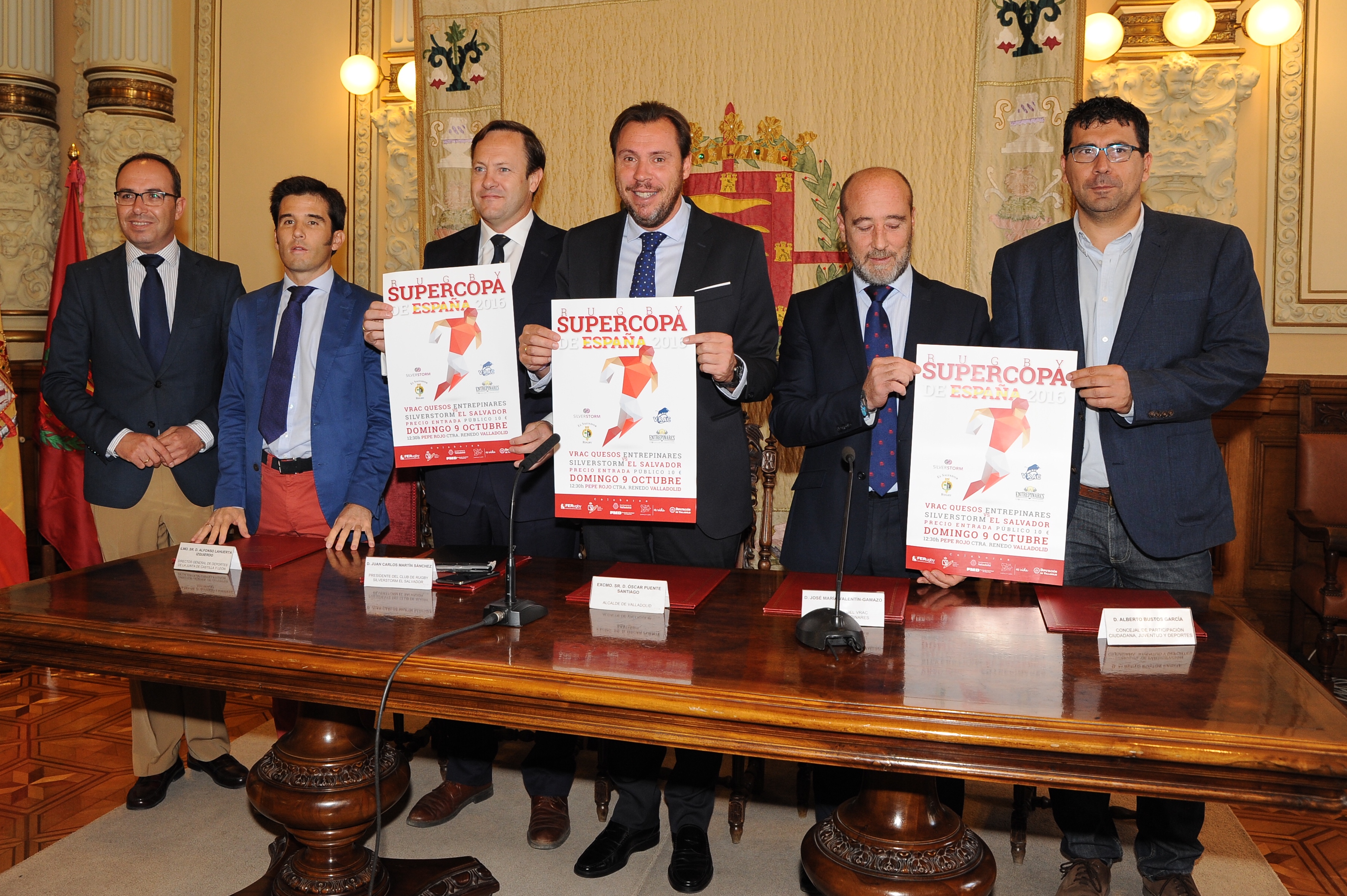 El alcalde de Valladolid, Oscar Puente, ha presentado esta mañana la Final de la Supercopa de España de Rugby que se disputará este domingo (12:30 horas) en los campos de Pepe Rojo, un encuentro que enfrentará a los dos clubes de la ciudad, VRAC Quesos Entrepinares y SilverStorm El Salvador. En el acto estuvieron también presentes el concejal de Participación Ciudadana, Juventud y Deportes, Alberto Bustos, el director General de Deportes de la Junta de Castilla y León, Alfonso Lahuerta, y los presidentes de ambos clubes, José María Valentín-Gamazo (VRAC Quesos Entrepinares) y Juan Carlos Martín (Silverstorm El Salvador).
