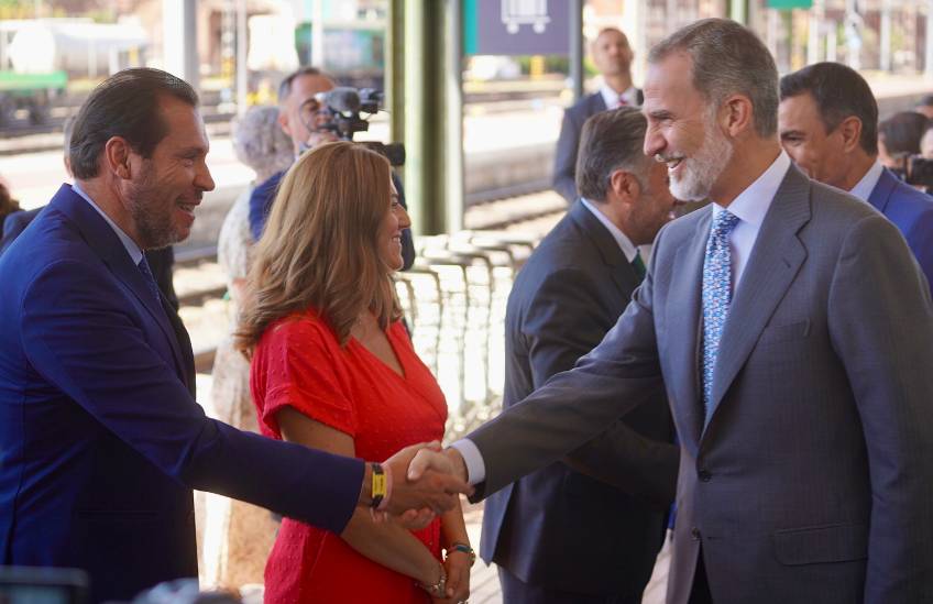 La alta velocidad tiene un nuevo destino desde hoy: Burgos. Y en el viaje inaugural el rey Felipe VI y el presidente del Gobierno, Pedro Sánchez, pararon en la estación del Campo Grande-Miguel Delibes. Aquí se incorporaron el alcalde, Óscar Puente; el presidente...