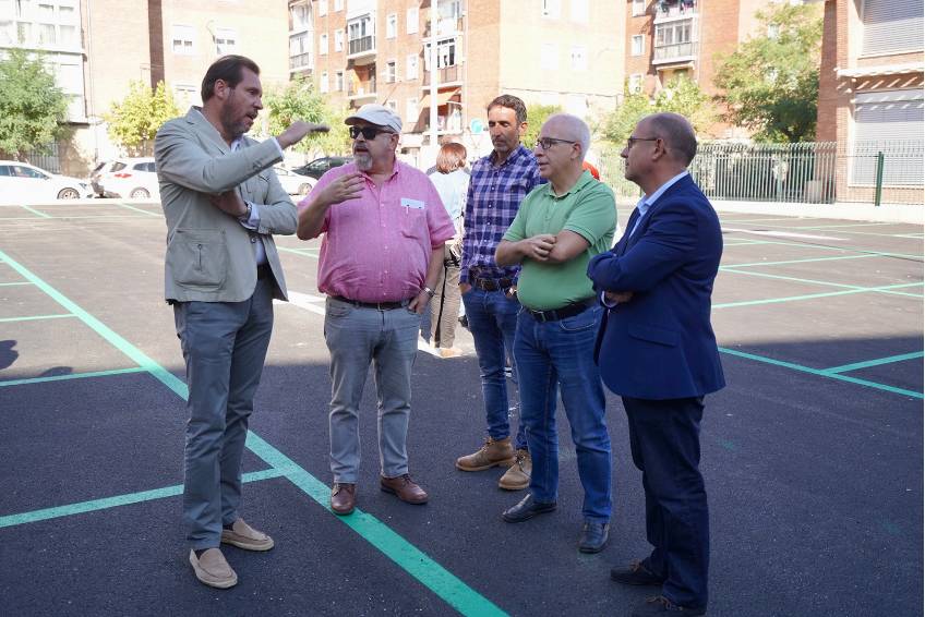 El alcalde de Valladolid, Oscar Puente, junto con el concejal de Movilidad y Espacio Urbano, Luis Vélez, y técnicos municipales, han visitado las obras ejecutadas de reurbanización del nuevo aparcamiento público en el barrio Cuatro de Marzo, ubicado en el patio...