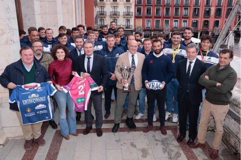El alcalde, Jesús Julio Carnero, ha recibido en la Casa Consistorial al VRAC Quesos Entrepinares, campeón de la Supercopa de España de rugby