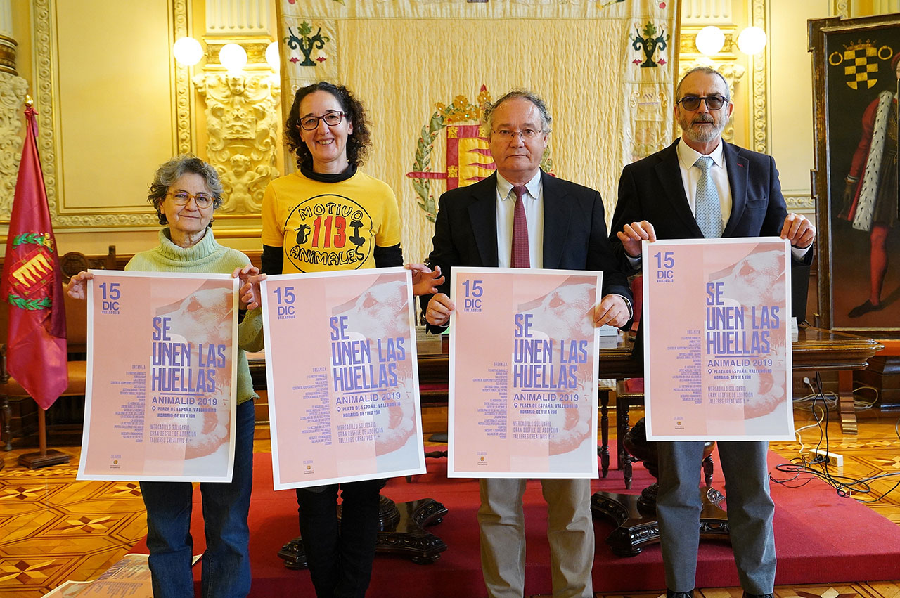 El concejal de Salud Pública y Seguridad Ciudadana, José Antonio Otero, acompañado por el director de Área de su Concejalía, Miguel Sancho, la representante de Gataforma, Mercedes Cano, y la responsable de la organización de Animalid 2019, Ana Isabel Martín,...- Fecha de la noticia