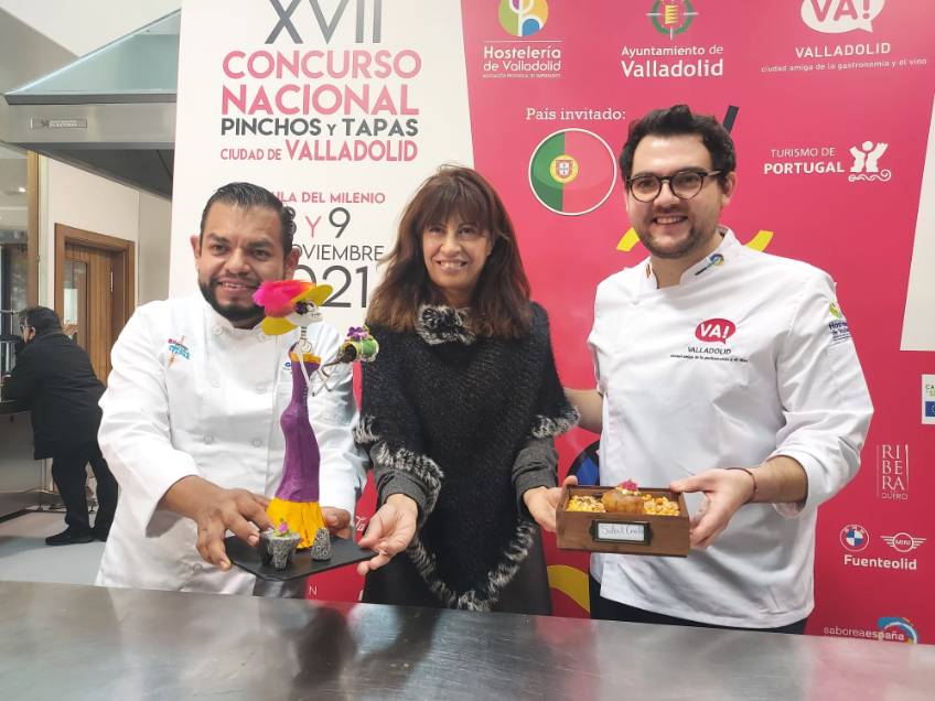 El ganador del XVII Concurso Nacional de Pinchos y Tapas Ciudad de Valladolid, Alejandro San José, del restaurante vallisoletano Habanero Taquería; y David Quevedo, del establecimiento Viñedo de San Miguel de México, ganador del V Campeonato Mundial de Tapas...