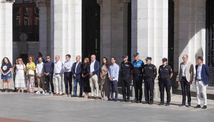 El alcalde de Valladolid, Jesús Julio Carnero, y miembros de la Corporación Municipal y otras autoridades han participado en el minuto de silencio en memoria de la vecina de la ciudad víctima de violencia de género.