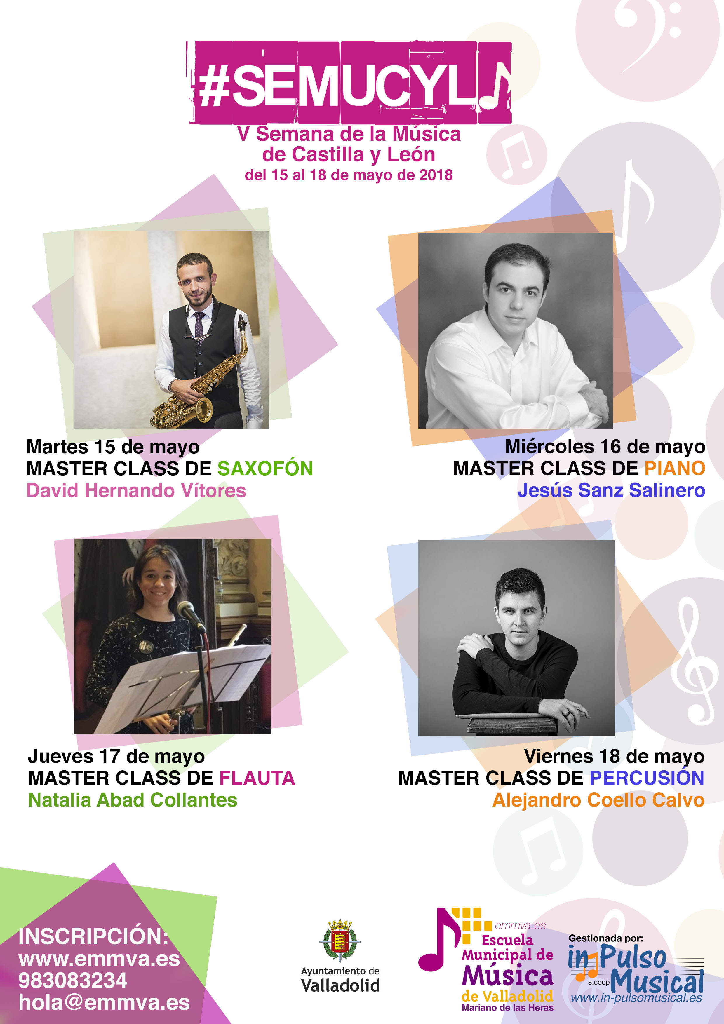 La Escuela Municipal de Música "Mariano de las Heras" del Ayuntamiento de Valladolid celebrará entre los días 15 y 18 de mayo la V edición de la Semana de la Música de Castilla y León centrándose este año en la práctica instrumental.Las inscripciones se realizarán...- Fecha de la noticia