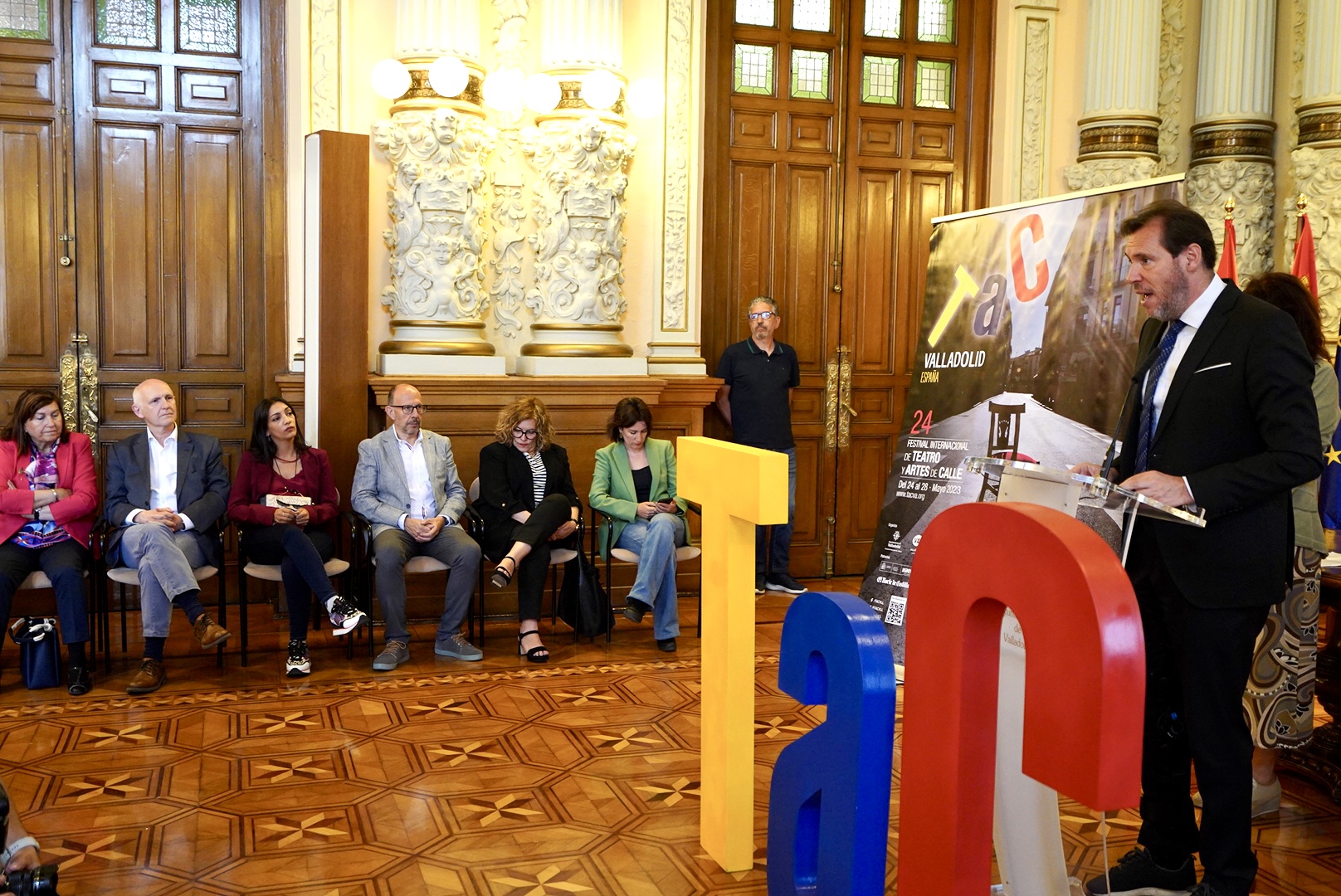 Un total de 214 representaciones, a cargo de 43 compañías, con 45 espectáculos diferentes, en 39 escenarios urbanos repartidos por toda la ciudad conforman el programa que hoy han presentado el alcalde de Valladolid, Óscar Puente, la concejala de Cultura y Turismo, Ana Redondo, el jefe de Programas de la Fundación Municipal de Cultura (FMC), Juan Herrero, y Charo Arconada, del equipo de Programación. Además, han asistido miembros del equipo de gobierno y de la Corporación Municipal.