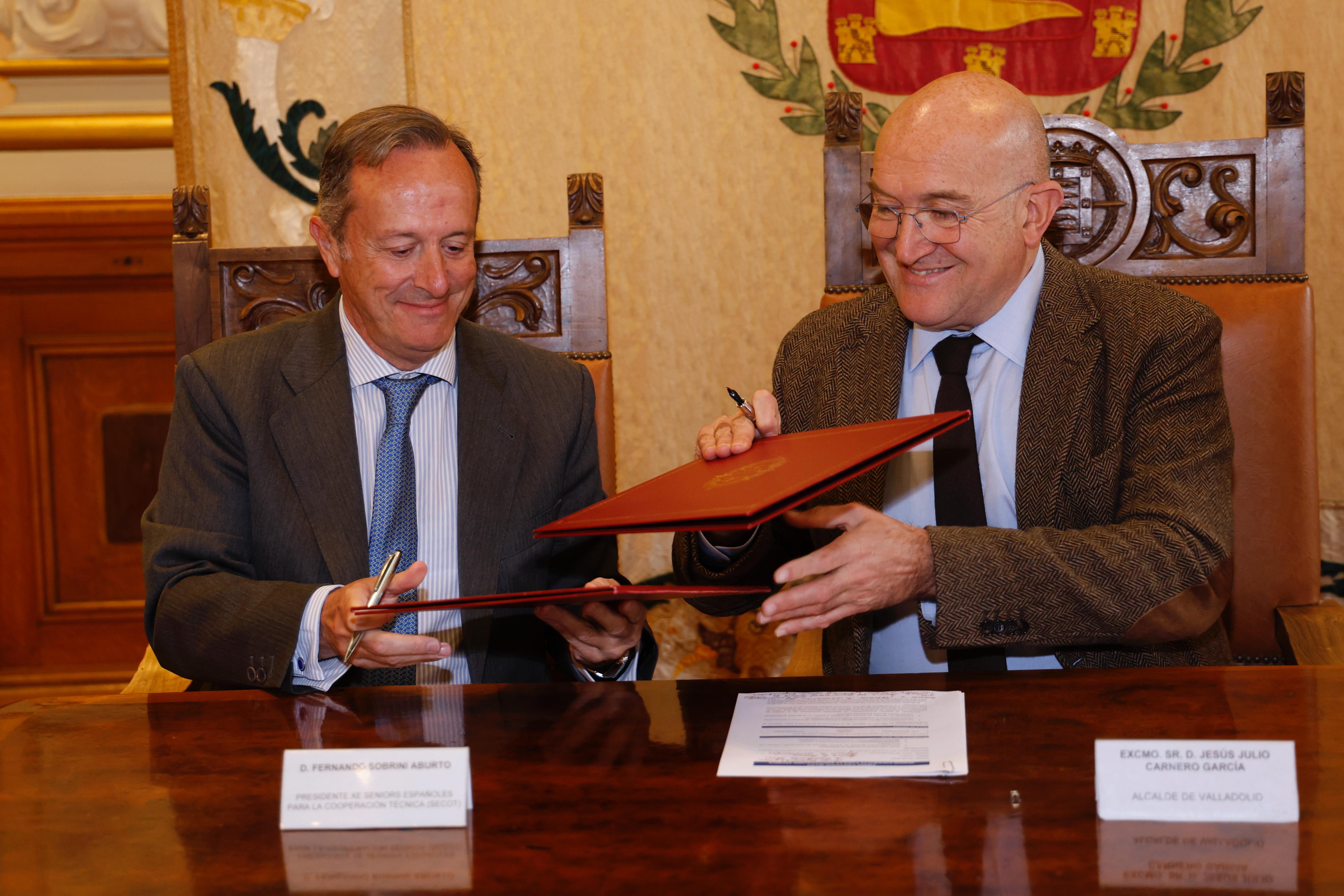 Fomentar el espíritu emprendedor, el desarrollo económico de la ciudad de Valladolid y la creación de empresas son algunos de los objetivos clave de este convenio de colaboración que han firmado hoy el alcalde del Ayuntamiento de Valladolid, Jesús Julio Carnero, y el presidente de Séniors Españoles para la Cooperación Técnica (SECOT), Fernando Sobrini Aburto.