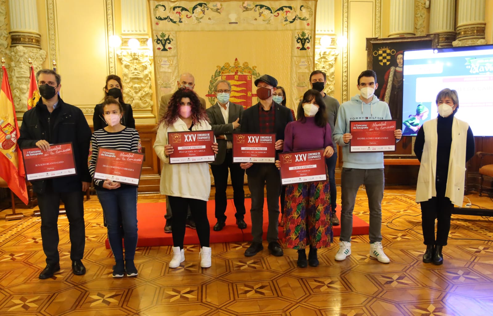 El primer teniente de alcalde, Manuel Saravia, ha presidido el tradicional acto de la celebración de la entrega de los premios de la Campaña de Navidad y del sorteo del Árbol de los Deseos, acompañado por la secretaria general de AVADECO, María Balsa; el vicepresidente de FECOSVA, Óscar Cuellar; el vicepresidente de la Cámara de Comercio de Valladolid, Javier Labarga, la directora de Marketing de El Norte de Castilla, Charo López Gil. Al acto han asistido los representantes de los tres establecimientos premiados en el Concurso de Escaparates y las tres personas premiadas en el Concurso de Fotografía.