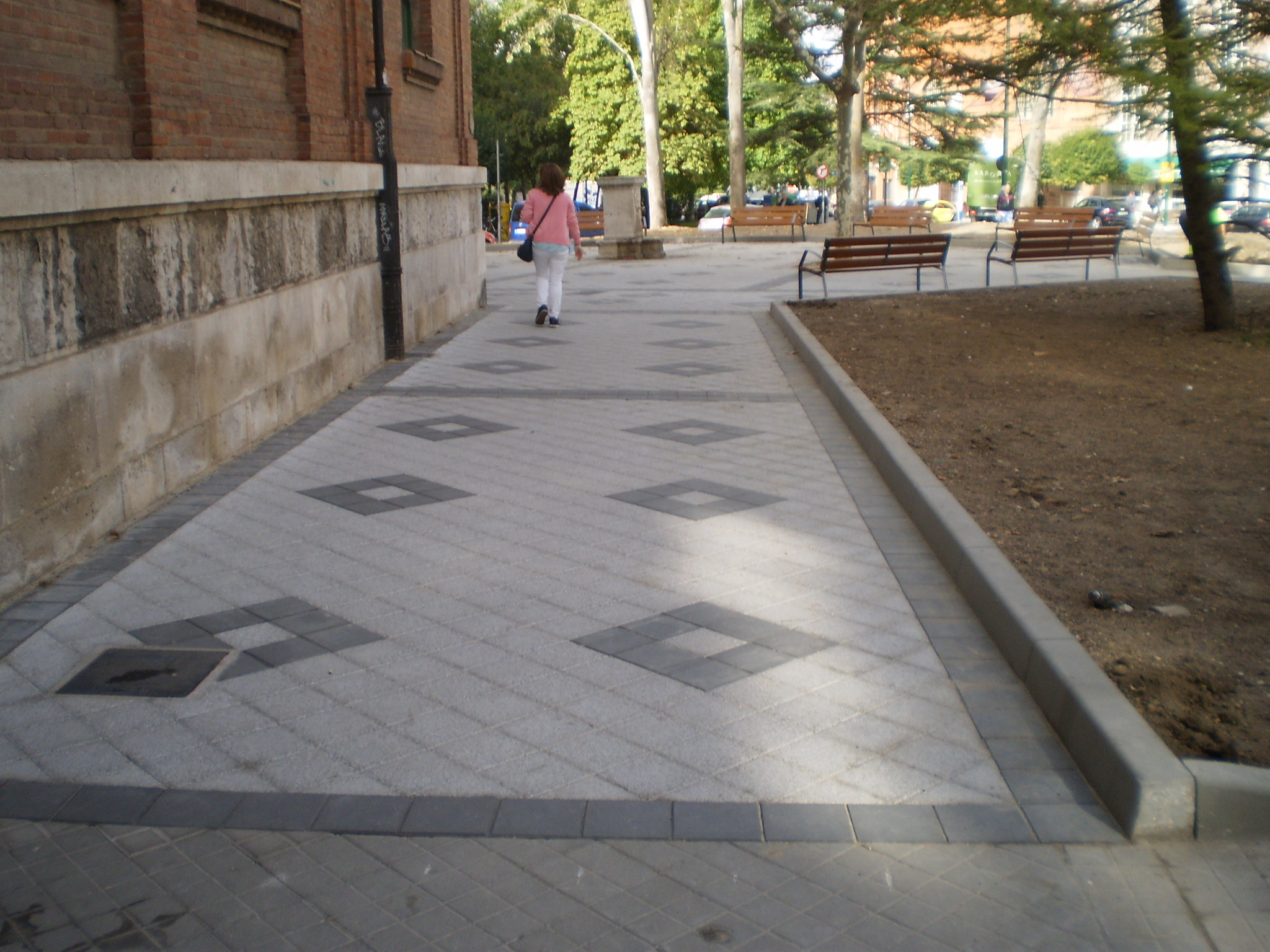 En cuanto a la pavimentación, se ha rehecho la plazuela frente al colegio, con menor dimensión enlosada en favor de la zona verde pero mucho más útil y accesible al desaparecer los ejemplares cuyas raíces lo hacían intransitable y con bancos de madera perimetrales mucho más cómodos.