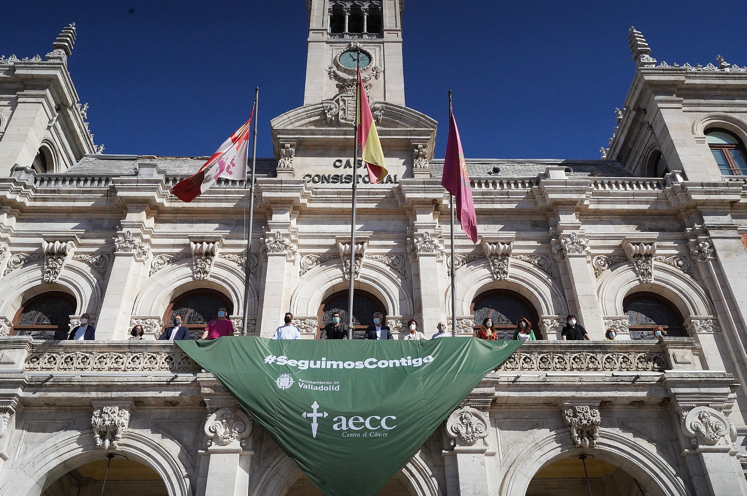 Por su parte, el presidente de la AECC Valladolid, Artemio Domínguez, ha señalado que "durante el confinamiento los balcones se convirtieron en un espacio de comunicación. En los días que tendríamos que estar de fiesta, los balcones se convertirán en espacios de solidaridad, con el mensaje de '#SeguimosContigo', mediante el cual Valladolid mostrará su apoyo a las personas con cáncer y a sus familiares. El dinero recaudado por la compra de la pañoleta se destinará íntegramente a la investigación oncológica".