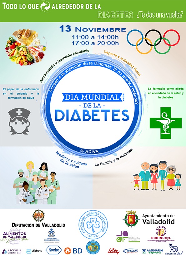 El domingo 14 de noviembre se celebra el Día Mundial de la Diabetes y ADIVA, la Asociación de Diabetes de Valladolid, ha puesto en marcha diversas actividades para concienciar y tratar de prevenir esta patología. Además, en este 2021 se celebra un hecho histórico en la historia de la medicina: el centenario del descubrimiento de la insulina. Este hallazgo cambió la vida de las personas con diabetes para siempre. Por eso ADIVA ha organizado charlas, mesas informativas y diversas actividades con el objetivo de hacer más visible esta condición de vida.