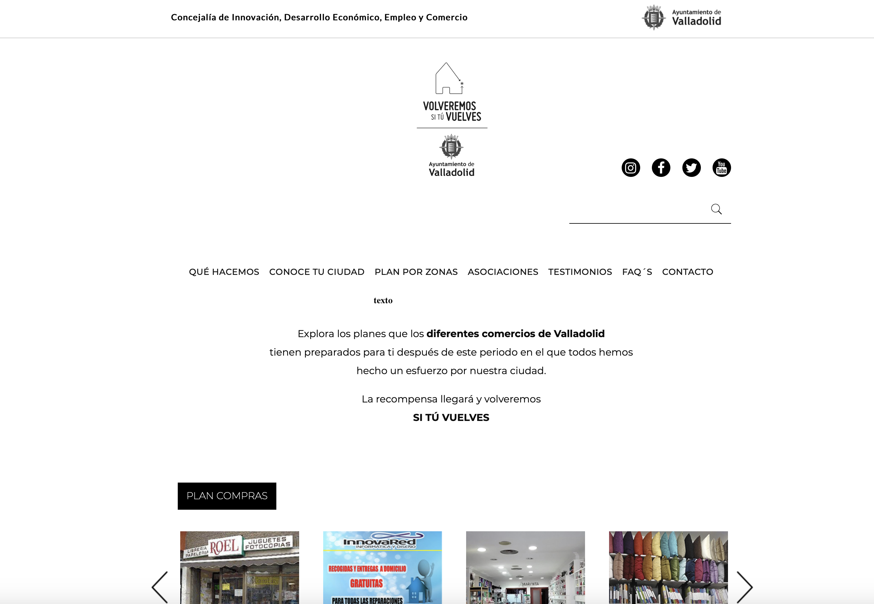 A través de la web www.volveremossituvuelves-valladolid.comEste enlace se abrirá en una ventana nueva los clientes pueden realizar una visita virtual para conocer o volver a visitar estos espacios comerciales, planificar con antelación sus compras o solicitar aquellos servicios que puedan necesitar tanto ahora como cuando todo vaya volviendo a la normalidad. La plataforma digital cuenta con varias secciones que invitan a redescubrir la ciudad, propone un plan de compras por zonas y barrios donde se especifican los locales y sus ofertas, ofreciendo el detalle de cada negocio tal y cómo lo quieran presentar los interesados.
